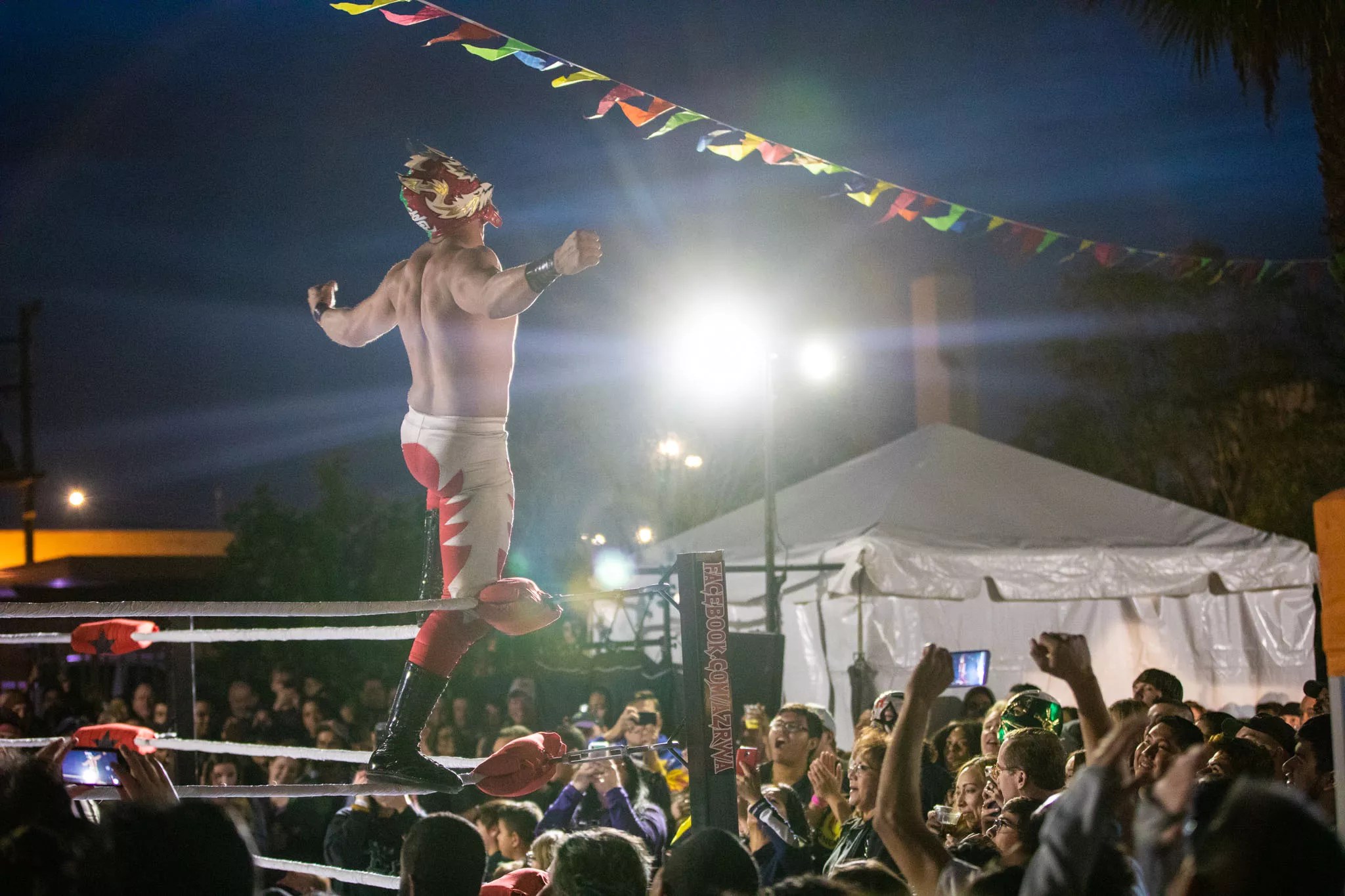 This year’s Flying Burrito Festival was off to a more auspicious start. Last year’s Flying Burrito Festival took place on a rainy day, and while this year’s fest happened under gray, cloudy skies, not a drop of rain came down and the weather was otherwise perfect. It was a pleasure to stroll down Second Avenue in the cool breeze, bouncing from one stage to another. The festival had four stages for music (three outdoors, one inside Crescent), with a lucha wrestling ring set up near the banquet-hall style rows of tables set up for folks to nosh on food truck grub between sets.