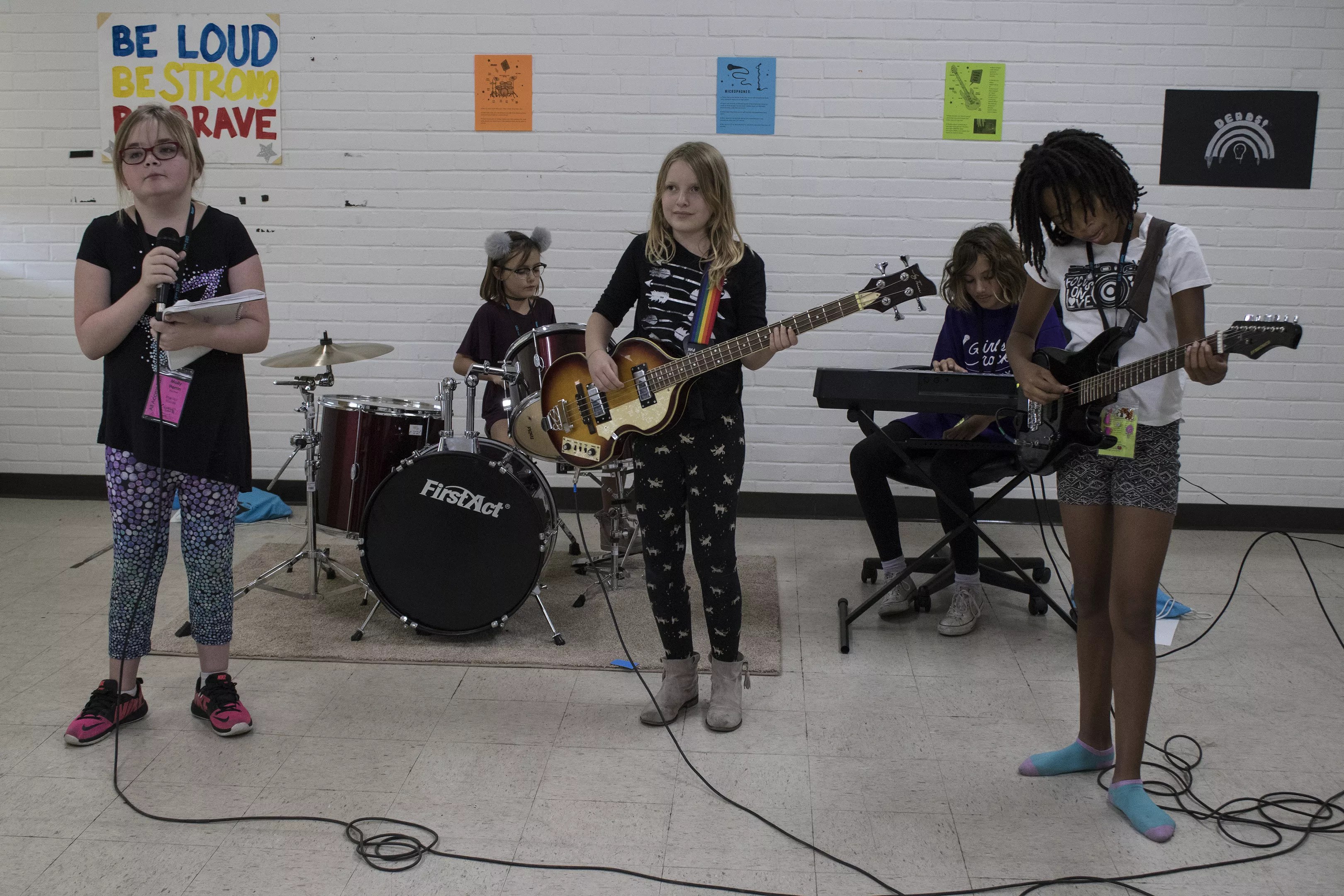The attendees, who are between 8 and 17 years old, form a band, learn to play an instrument, write a song, and work as a team. But there’s more going on at camp than just music. There are also workshops throughout the day with topics ranging from songwriting, the history of women in music, self-defense, and body positivity. They learn DIY skills and to see each other not as competitors, but as collaborators.