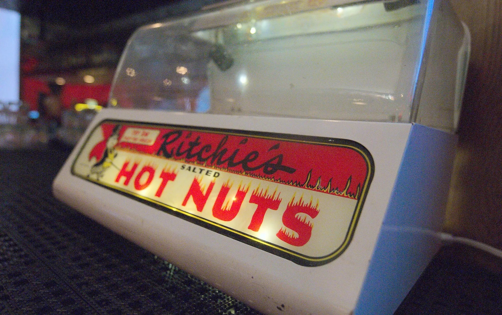 A hot nuts machine, a hallmark of any great dive bar.