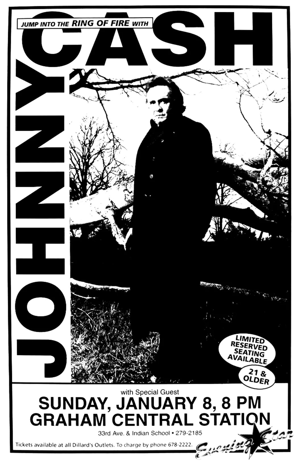 A poster for Johnny Cash’s 1995 concert at Graham Central Station in Phoenix.