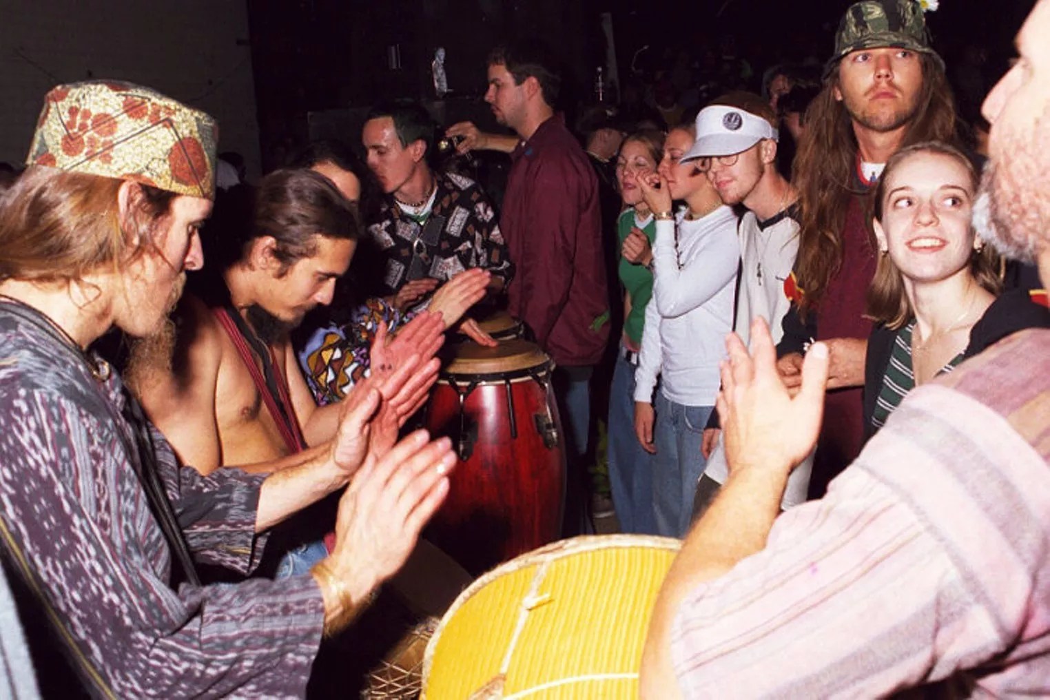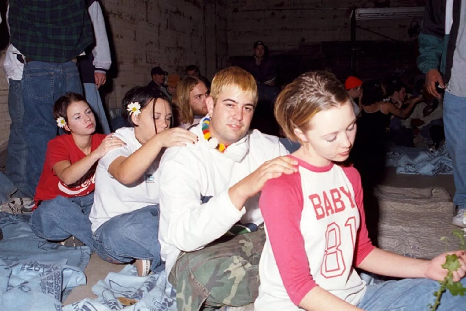 Ravers giving out backrubs at the Simple party in 1997.