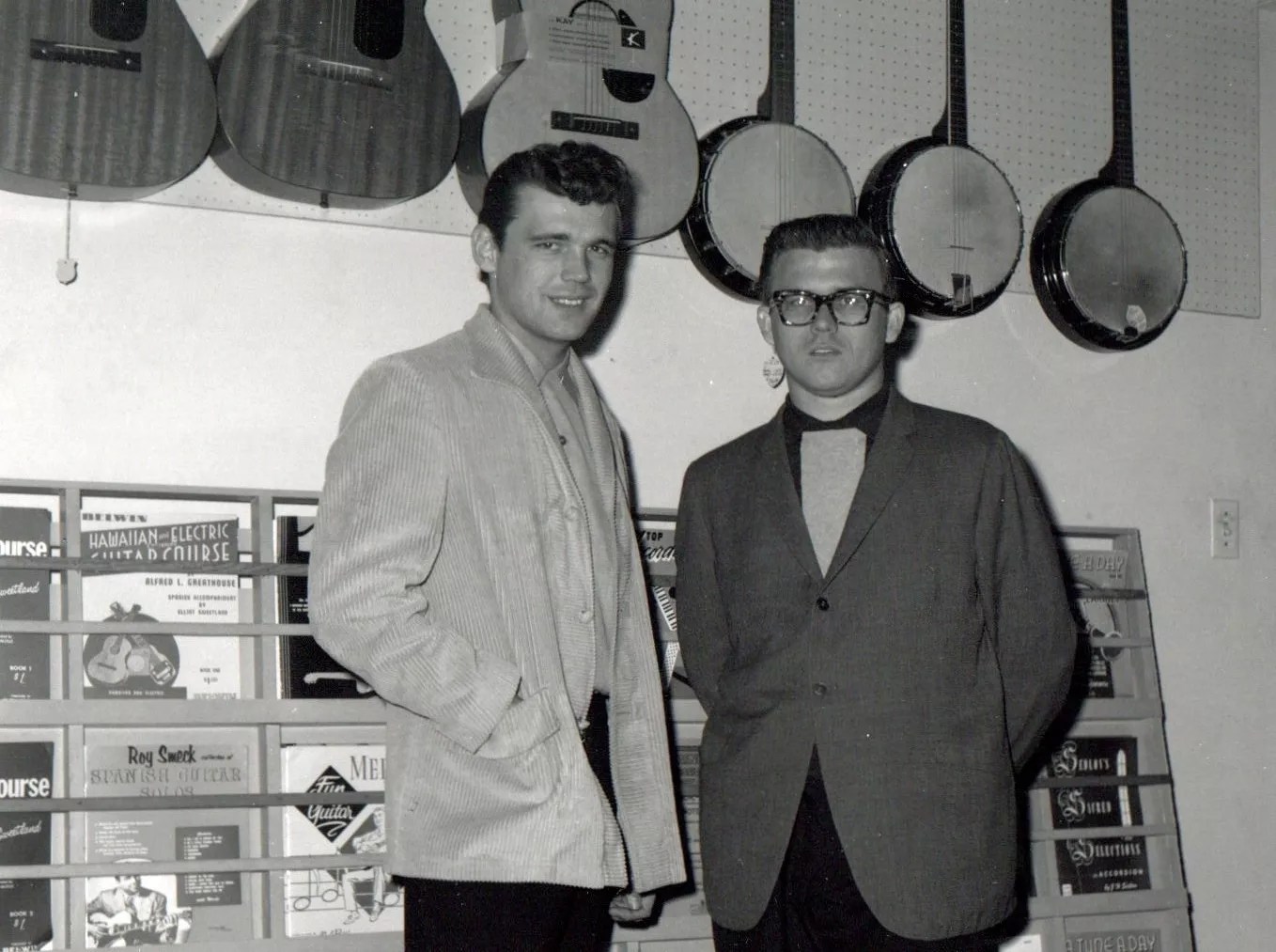 Angelo “Ziggie” Zardus (left), founder of Ziggie’s Music, with rock ‘n’ roll legend Duane Eddy (right), who purchased his famed Gretsch guitar at the shop.