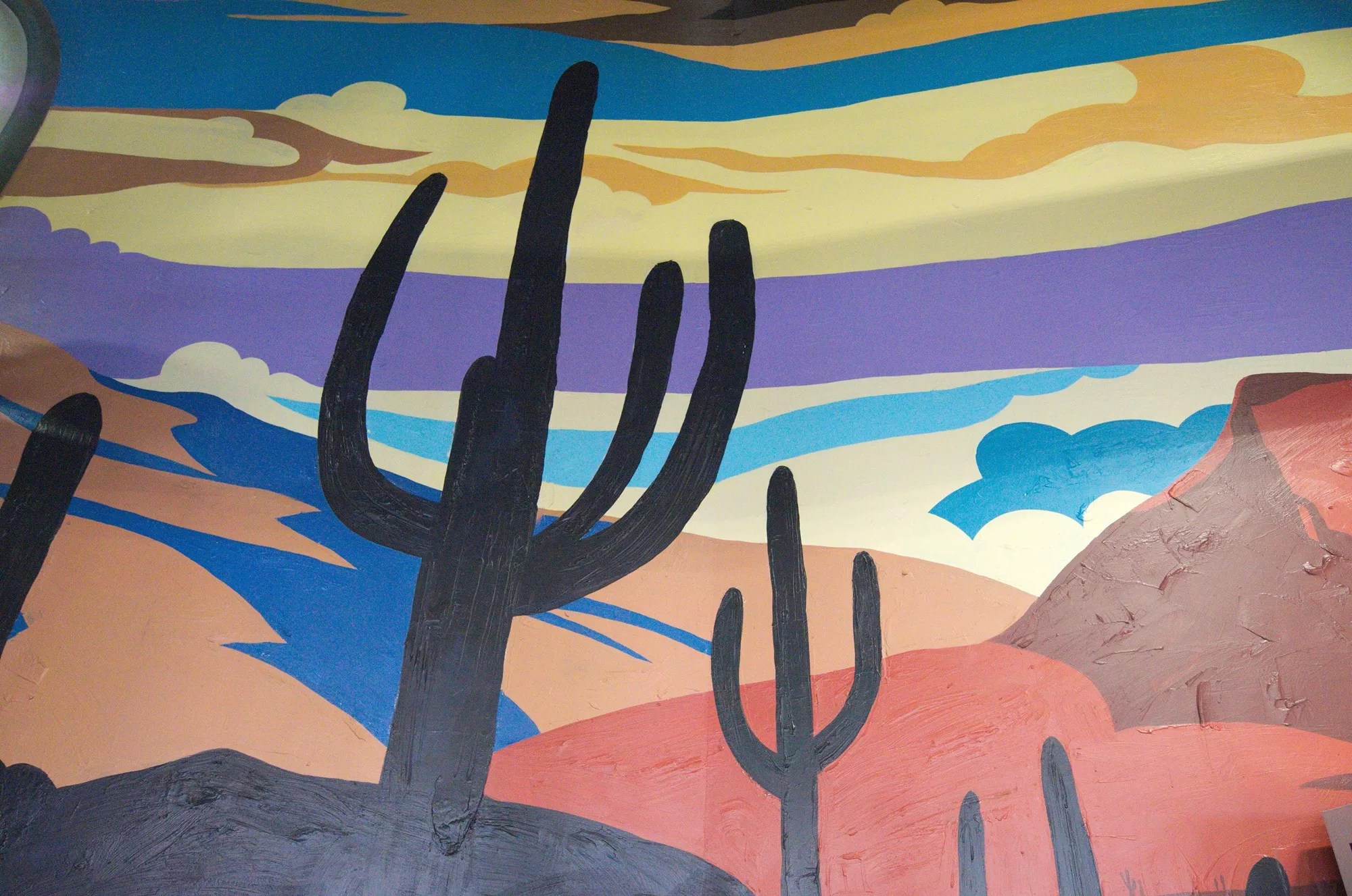 Created by artist and designer Gary Patch of Tucson-based company Patch & Clark Design, who helped create The Van Buren’s look, it depicts an epic Arizona desert landscape transitioning from day into night.