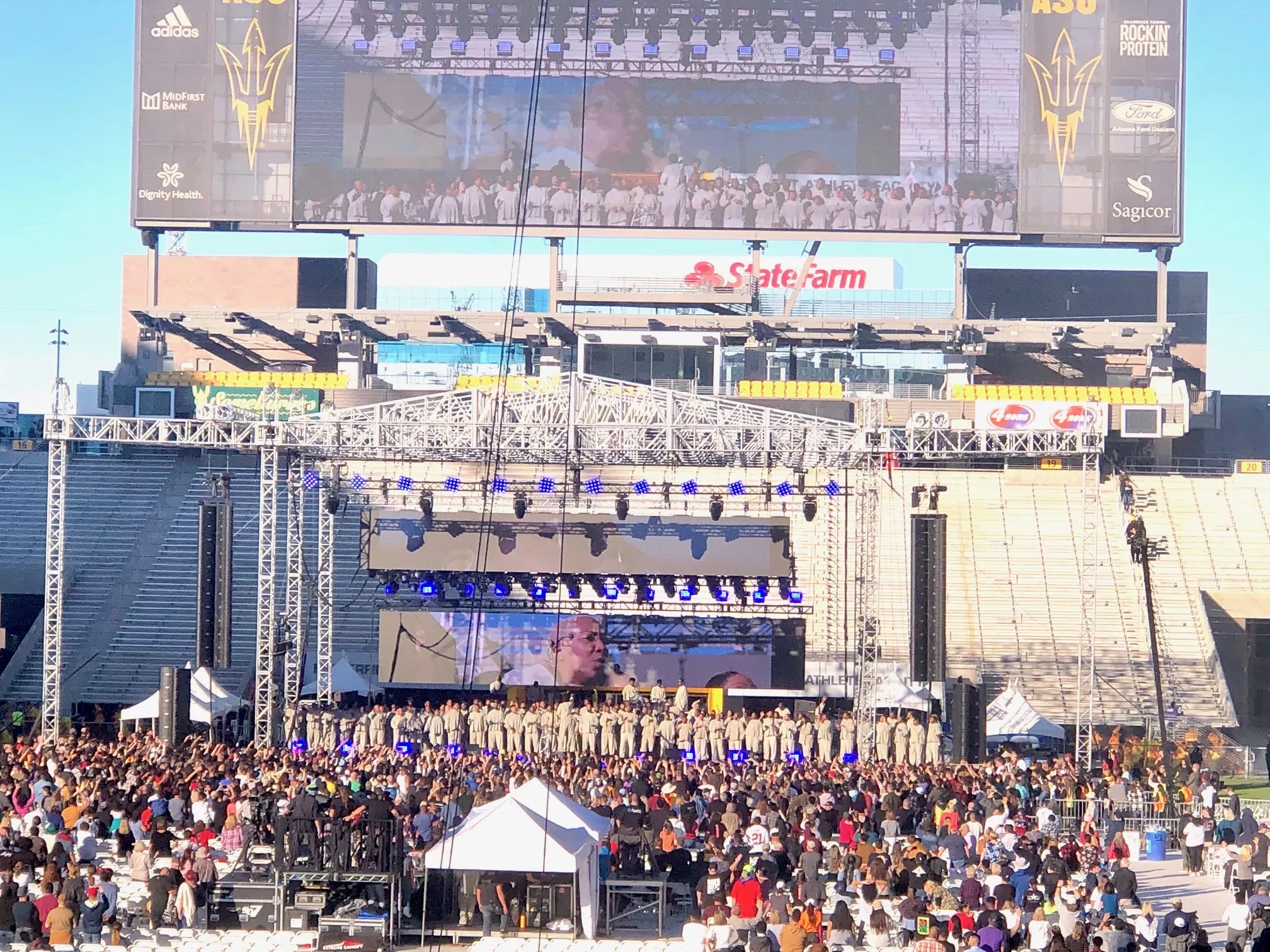 Sitting in the bleachers at Sun Devil Stadium waiting for Kanye West’s Sunday Service Choir to assemble onstage, I couldn’t help but think of another line from Yeats’ “Second Coming:” “The worst are full of passionate intensity.” All around me people whooped and hollered with arms aloft and lips mouthing silent prayers while the P.T. Barnums in church clothing sold them cheap miracles onstage. Neither the worst nor passionate intensity were in short supply at Awaken 2020.