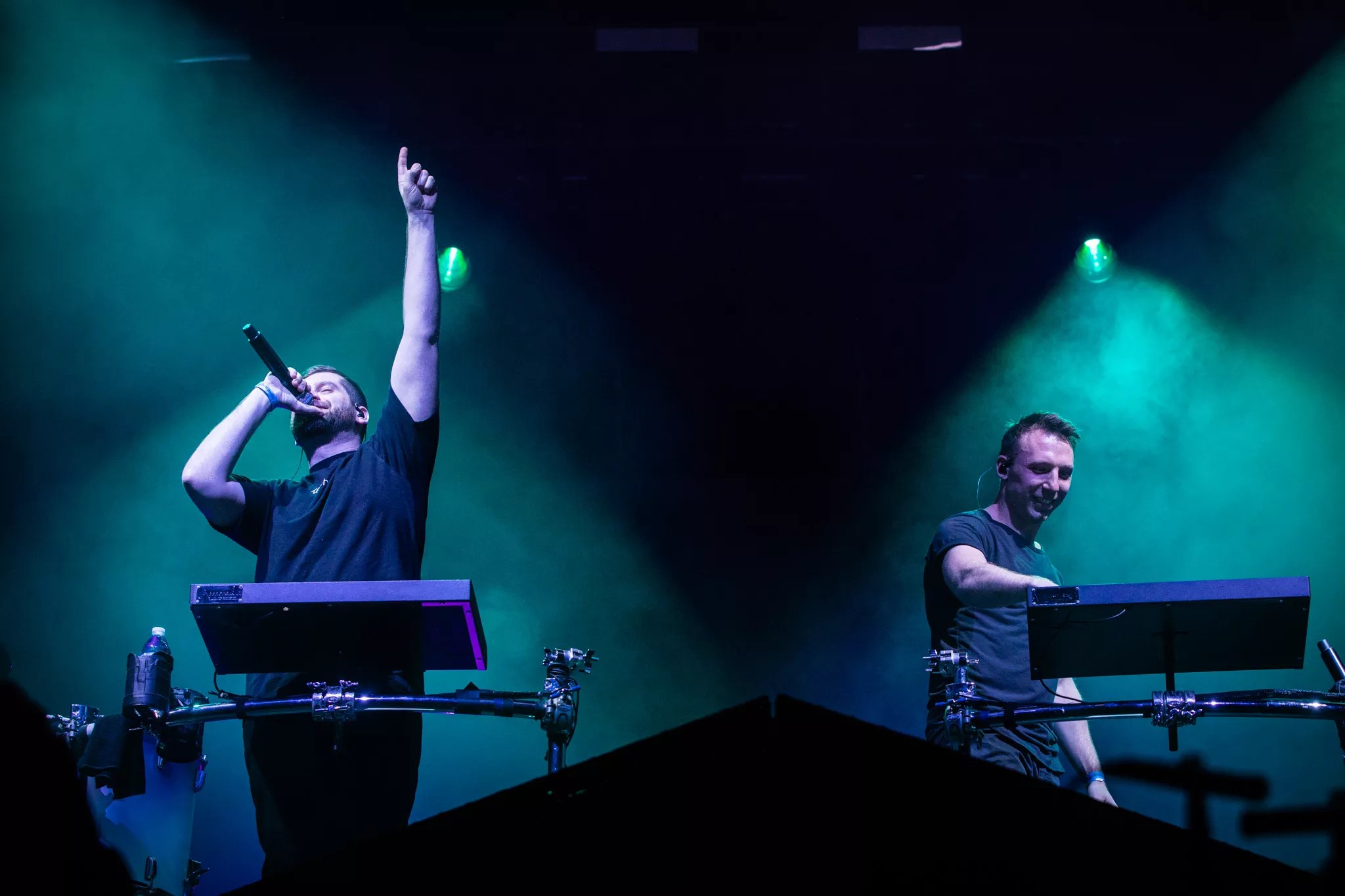The Knocks have two sculpted pigeons on stage. These are not sad blowup pigeons: These are sculpted pigeons, with gold chains and shades. These are the pigeon equivalent of the Teenage Mutant Ninja Turtles. The pigeons bop on a sparking disco floor in the backing visuals, as the Knocks put down a full hour of nonstop Brooklyn dance action. Half their set is done with a full band with two costume changes, and half is a slimmed-down presentation of just Ben “B-Roc” Ruttner on the tables and James “JPatt” Patterson on the mic. The two make the crowded festival landscape feel like the best house party you’ve ever been to. They don’t care if you’ve only heard one of their songs or you’ve been following since day one. All the while, the pigeons are a mainstay. If dance music is a spectator sport, the Knocks have this thing rigged. GF