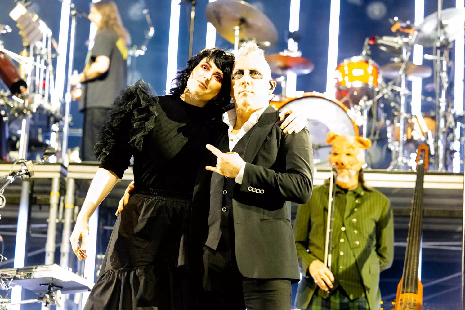 It was a rare serious moment in an evening that had plenty of antics, including Keenan and Puscifer’s Carina Round playing Rock ’em Sock ’em Robots; people playing ping-pong onstage during a Puscifer set; and Keenan and Les Claypool ascending to the upper level via motorized stair lift, a humorous jab at Keenan’s advanced age.