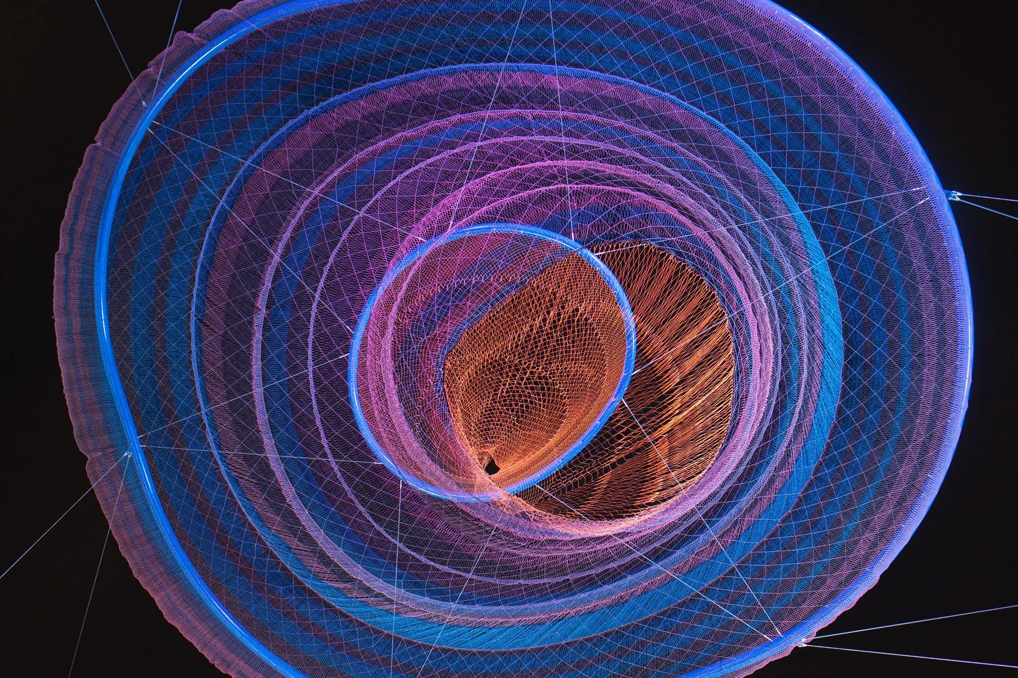 Janet Echelman’s aerial sculpture “Her Secret is Patience” at Civic Space Park in downtown Phoenix.