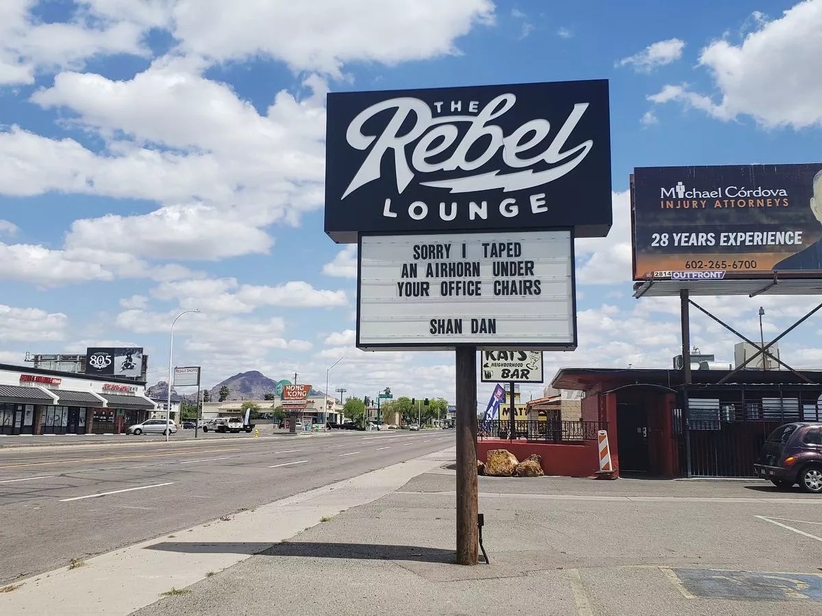The Rebel Lounge may be closed for now, but its marquee is putting on a show.