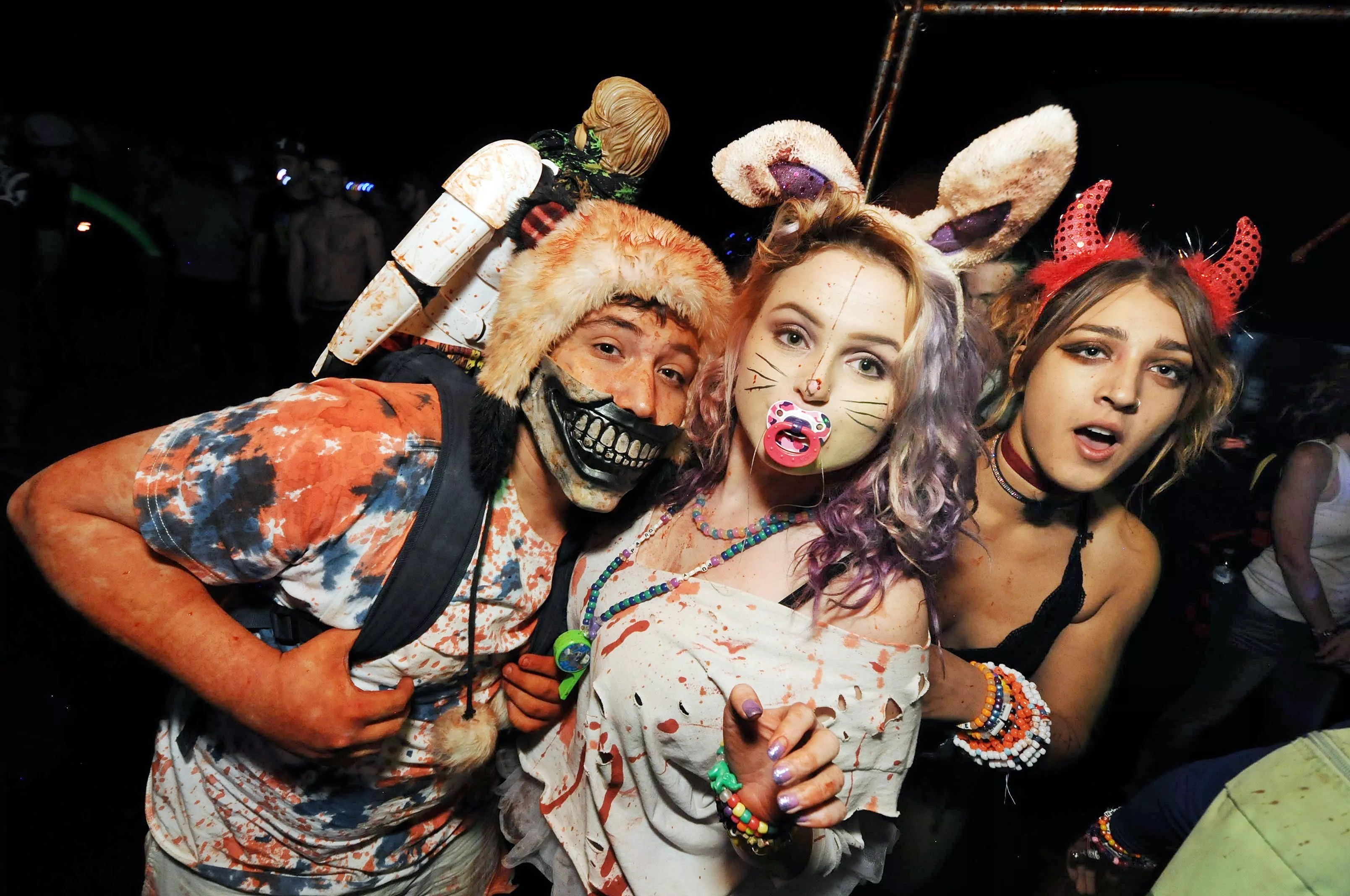 Getting to the event itself, for instance, involves either being in the know or hitting up the internet for directions to its clandestine location. And once you’re there, expect to be doused with crimson-colored fake blood that rains down from above or is sprayed onto attendees using Super Soaker-like water guns. Elsewhere, you can hitched during tongue-in-cheek “blood weddings” or witness bizarre skits and equally strange performance art pieces take place while local DJs spin a hard-hitting cannonade of electronic dance music genres.