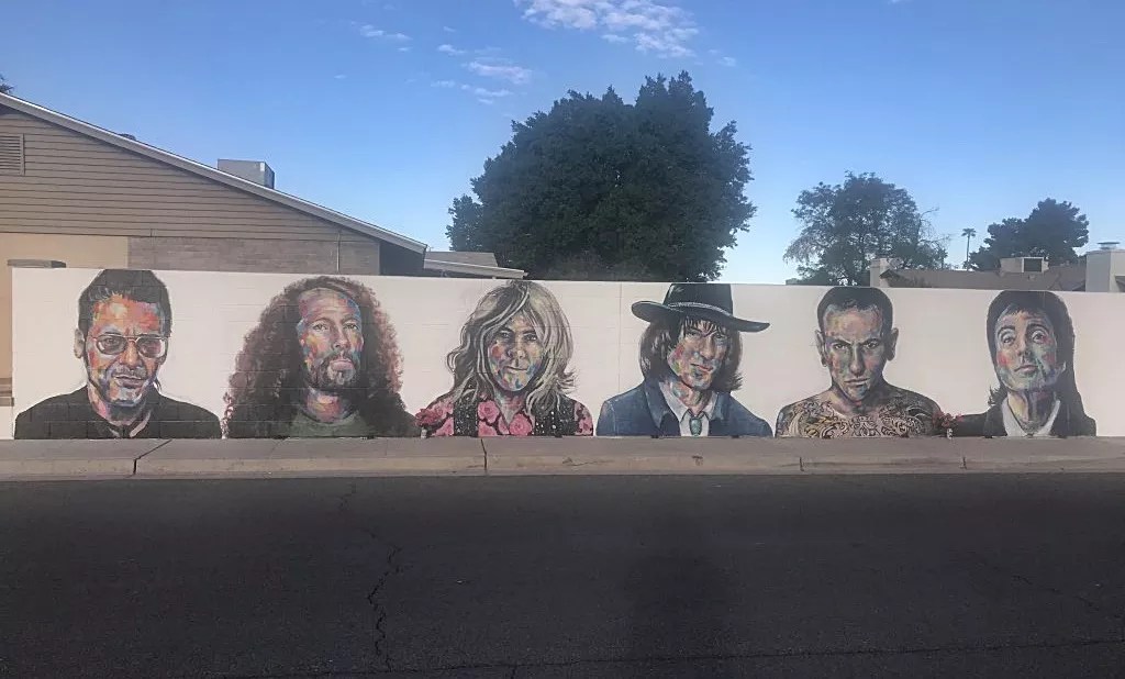 The Valley Rockstar Mural in Tempe, which now includes a portrait of the late Lawrence Zubia.