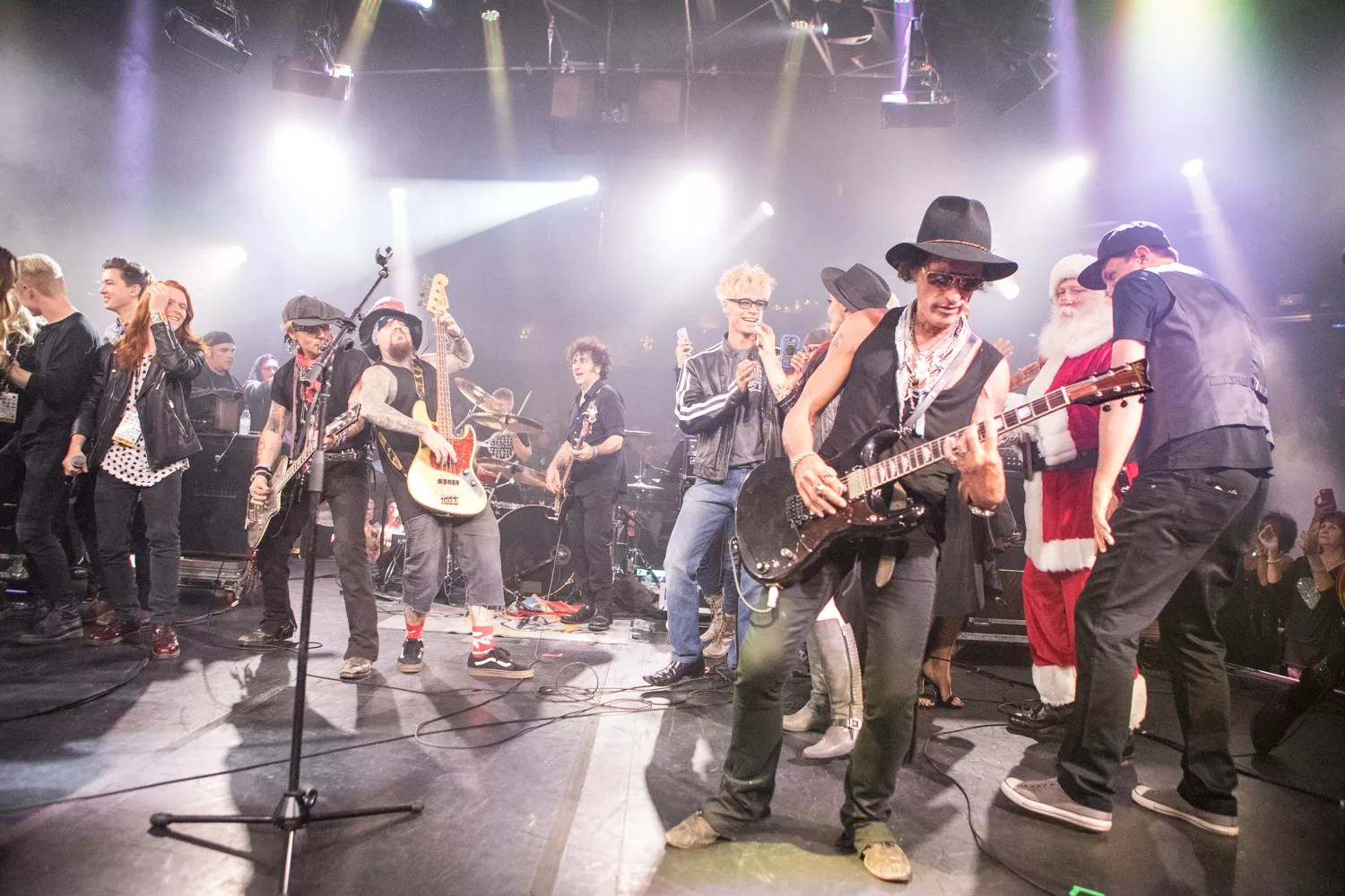 Formed at L.A.’s legendary Rainbow Bar & Grill in early ’70s, the original Hollywood Vampires – a drinking club, not a band – held court in the upstairs bar at the famed location. Many of the biggest names in rock were part of the unofficial club, including John Lennon, Harry Nilsson, Keith Moon, Mickey Dolenz, Ringo Starr, and Vampires president Alice Cooper. Jim Morrison and Jimi Hendrix, previous Cooper drinking buddies, were posthumous “honorary” members.