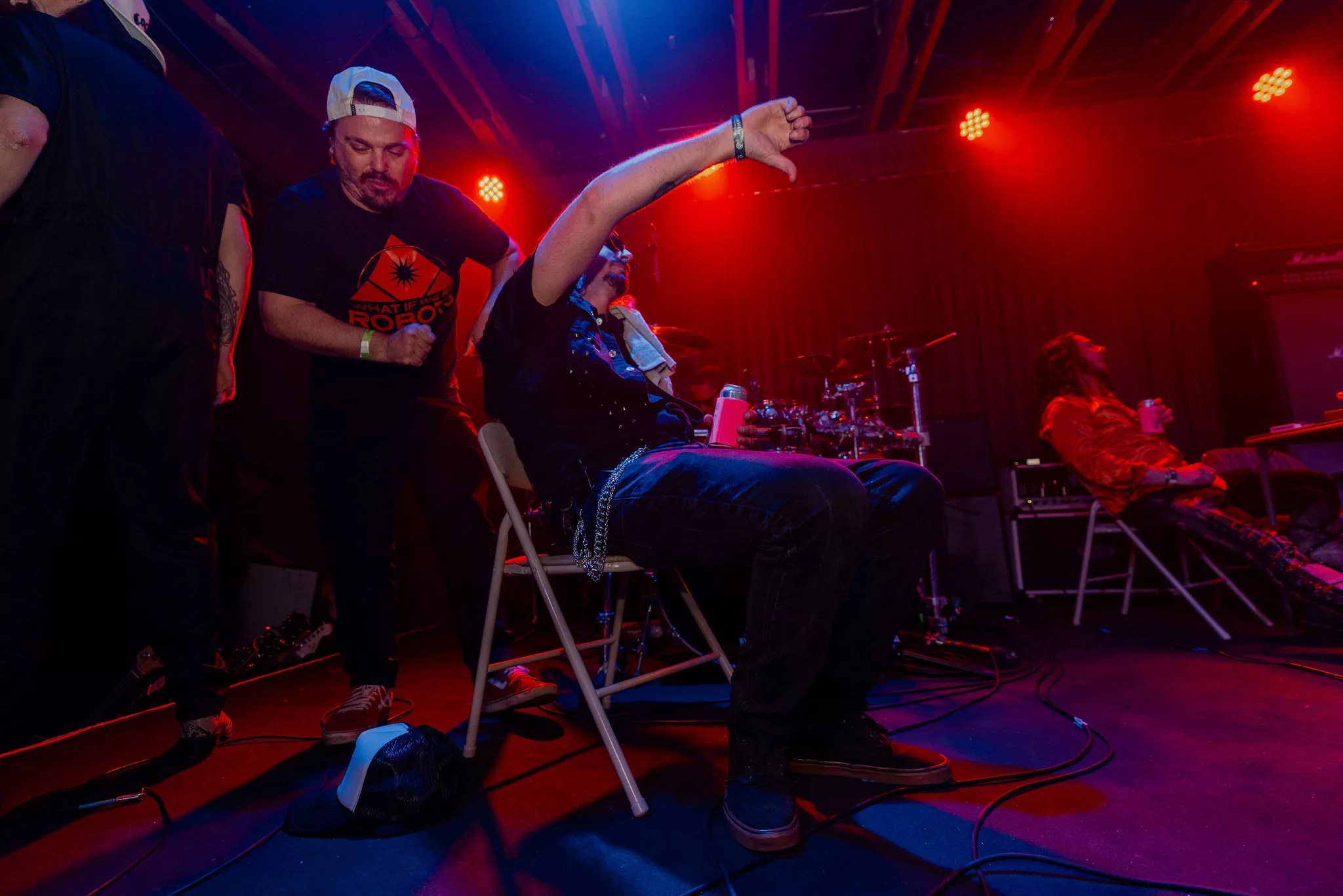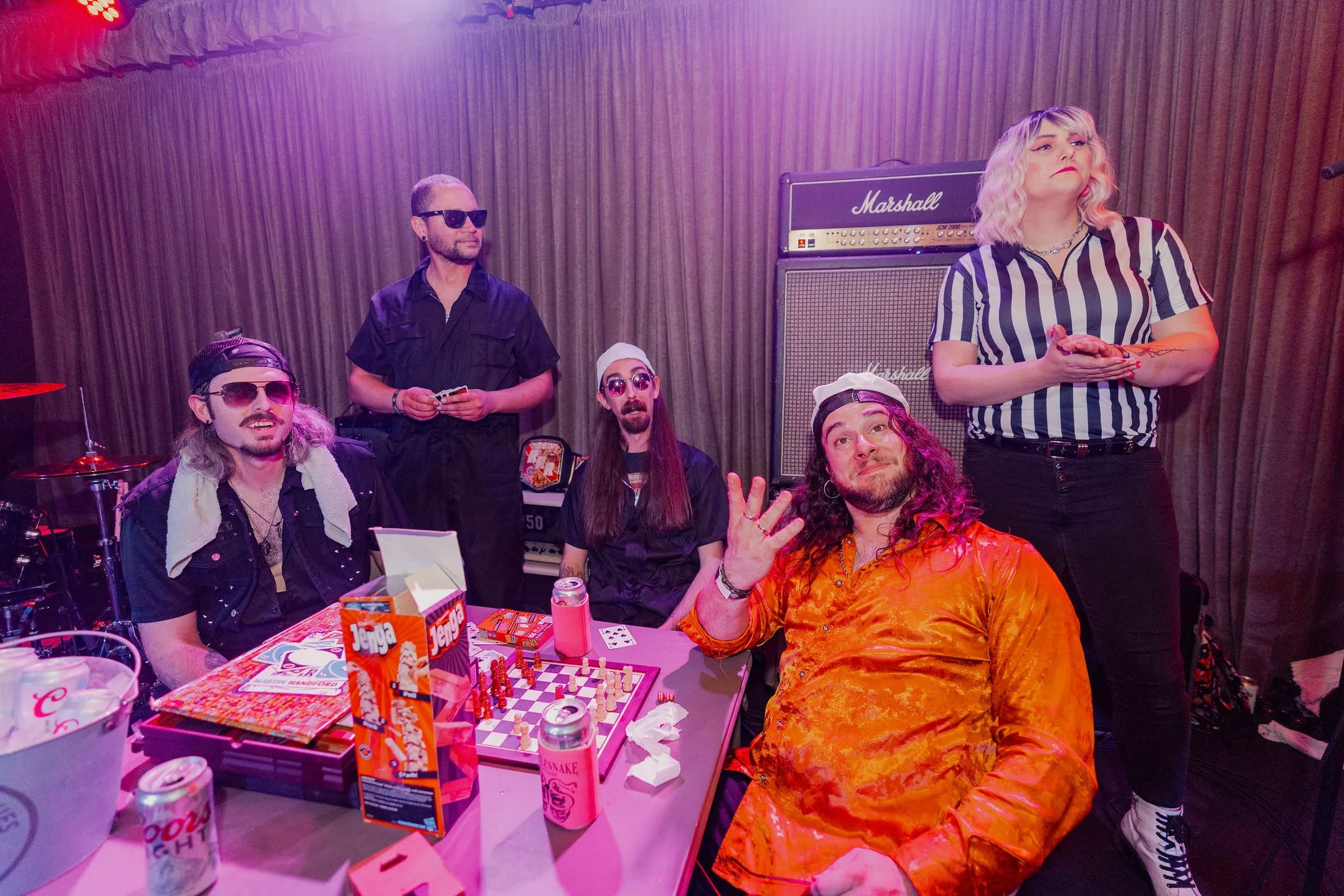 The Rumble played out just like an indie rock version of WrestleMania, complete with chair throwing, mannequins, choreographed fights, trash talk and even deliberate meddling with the other band’s equipment. There was even something akin to a shark cage gimmick, as a card table acted as a kind of “strategic zone” where the non-performing band could play board games or plot their enemy’s untimely demise. The one thing missing? A run-in from Seth Rollins.