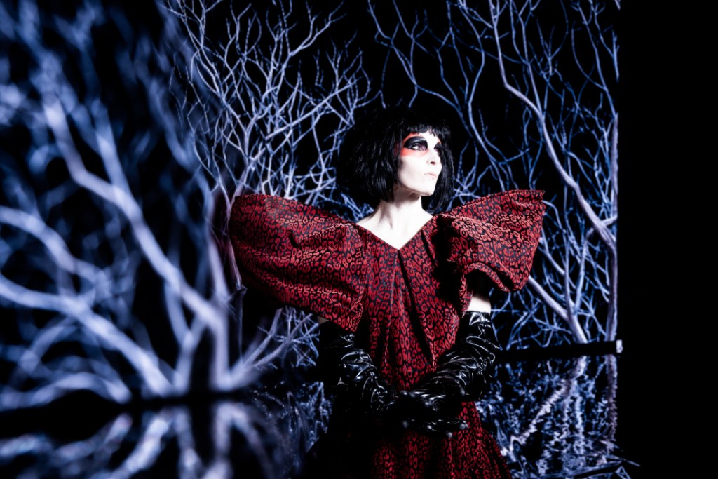 On opposite sides of a stage, two fierce figures — one clad in industrial garb, the other in richly colored, stylish attire, faces painted with equally lush palettes — rev up. Each taps their feet the way a bull prepares to charge, creating a kinetic field around this rock ’n’ roll cage match. Behind them, drums pound furiously and guitars slip slick riffs into the atmosphere, combining to bring the tension to a boiling point.
