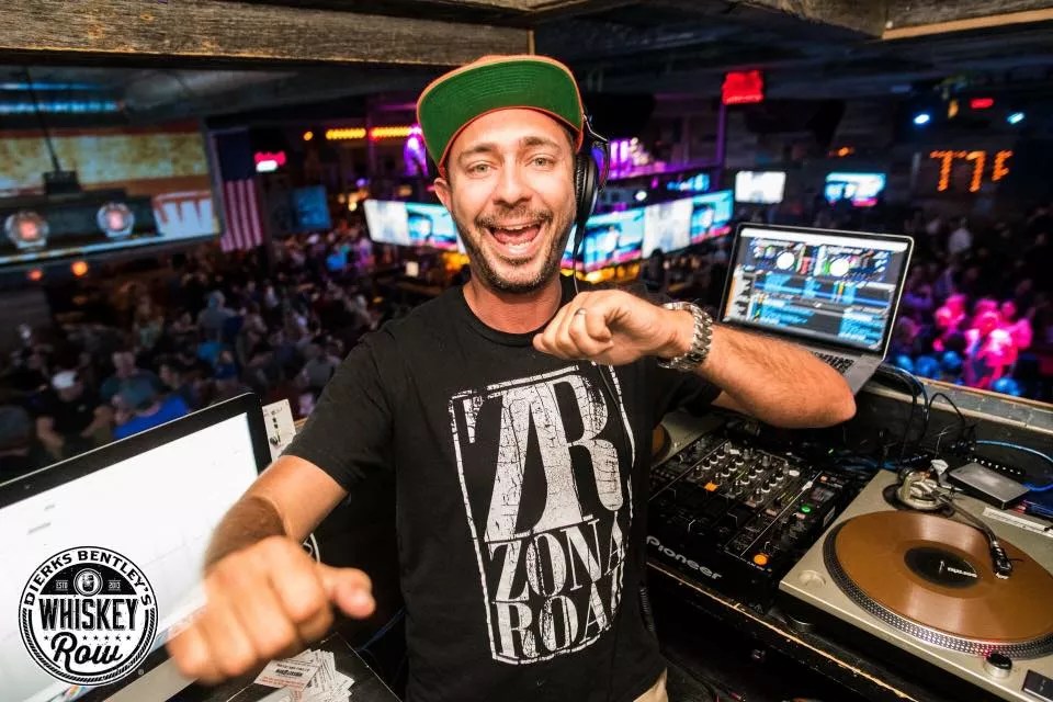 Chupp behind the decks at Dierks Bentley’s Whiskey Row in Scottsdale.