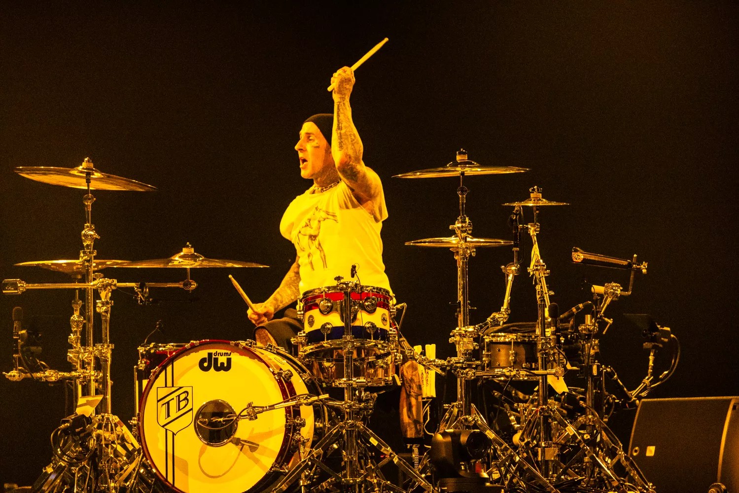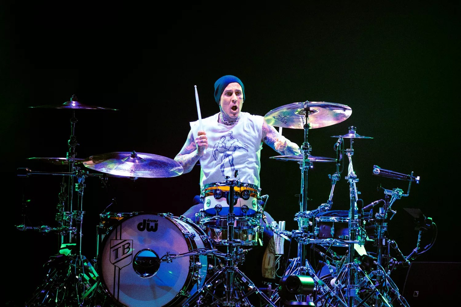 Drummer Travis Barker’s wife, Kourtney Kardashian, was on hand for the show.