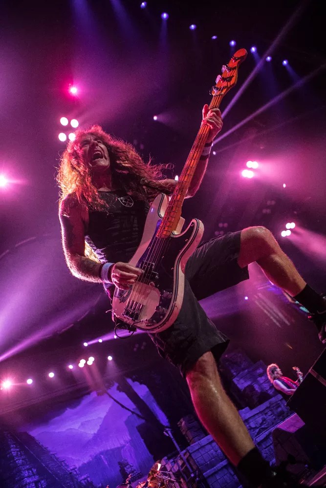 Probably, no one really cared. The crowd was seeing Iron Maiden and didn’t have any fucks to give about specifics. As the band played, fans passionately sang along, every word forced through teeth gritted in excitement. They threw the sign of the horns. Many attendees were proficient masters of the air version of their instrument of choice. Some were a whole air-band unto themselves.