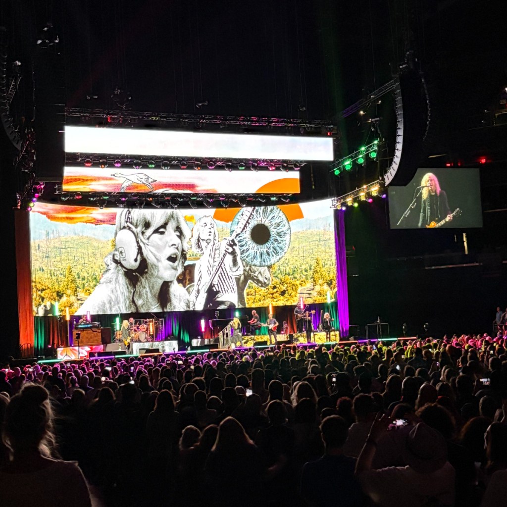 Nicks performed in front of massive screens that displayed images that were coordinated perfectly with each tune. Many featured pictures of her from the past, with her big eyes and flowing long hair. Although the images could be a bit on the nose — a flying white dove during “The Edge of Seventeen,” anyone? — they always managed to be effective. I also enjoyed the dark images of lightning and a lighthouse for the track “The Lighthouse.” Written in Chicago by Nicks in response to the fall of Roe v. Wade, it’s impressive that she’s still able to craft powerful jams after all this time.