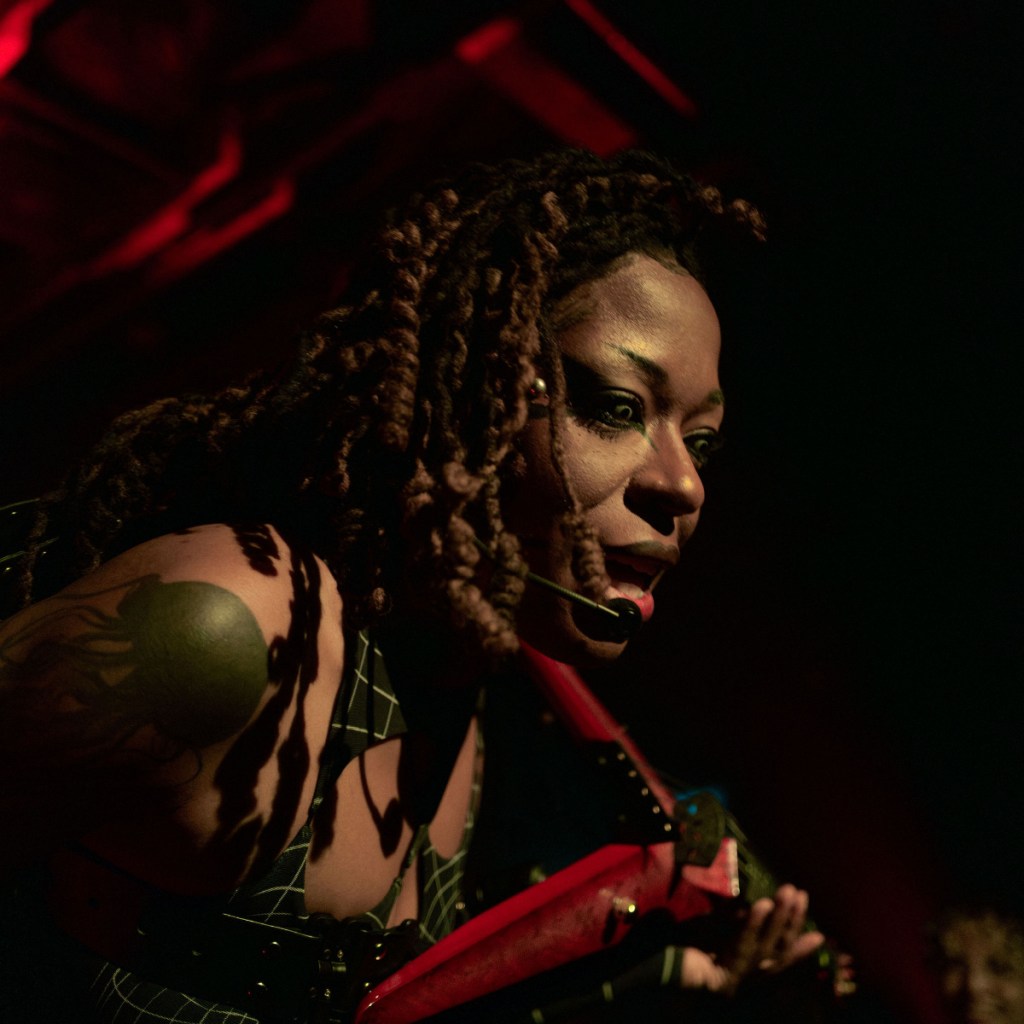 But now it’s past nine, and Sudan Archives arrives. And soon this classic, quaint venue has become a Coruscant nightclub in a galaxy far, far away, a boiler room mixed with a stage show, rife with ethereal yet industrial sounds and constant, relentless movement.