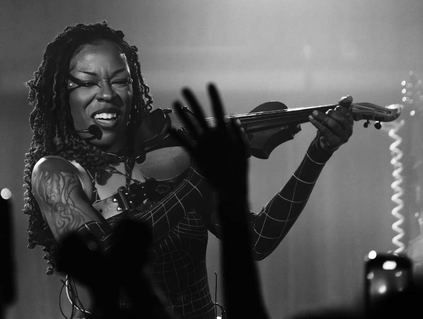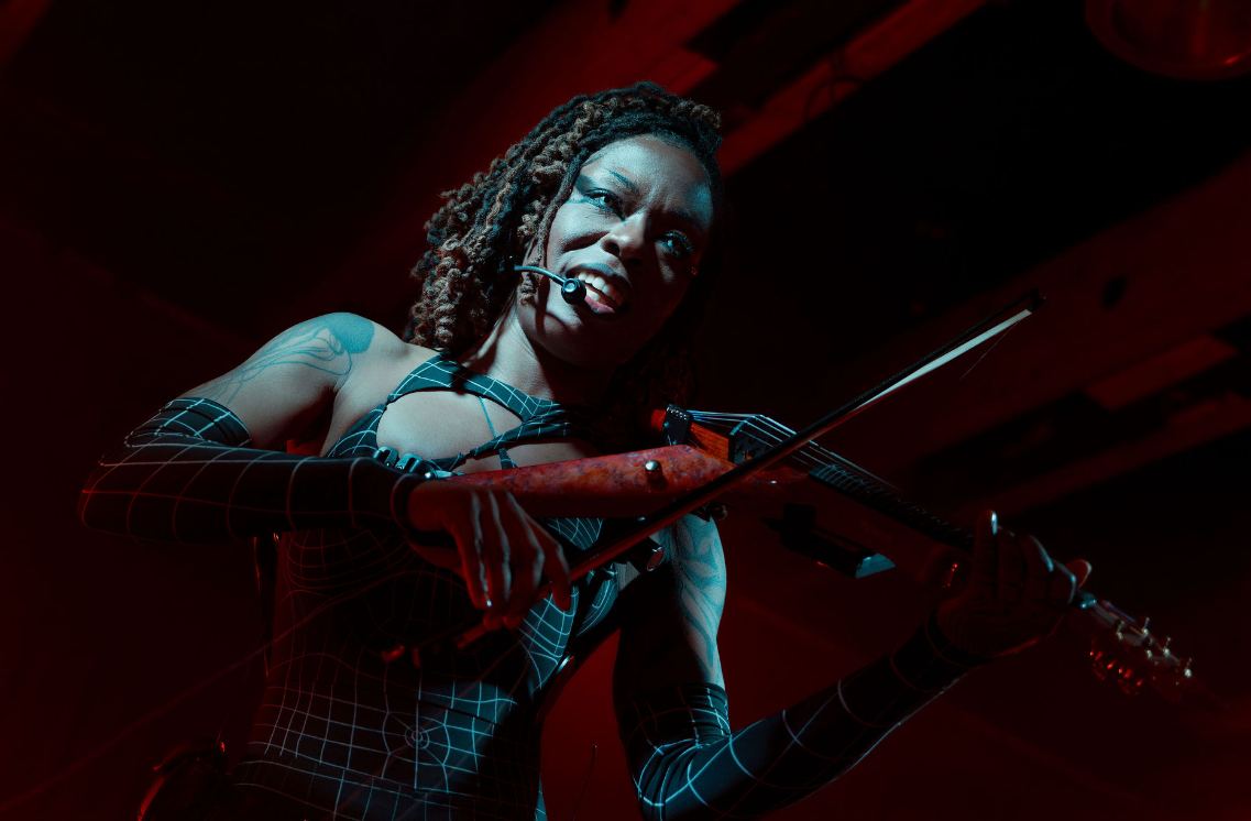 From her webbed and metallic bodysuit to her sheathed violin bow and quiver, which was accompanied by the appropriate metallic swoosh each time it was unsheathed, Sudan Archives was immediate in establishing a commanding, mesmerizing presence.