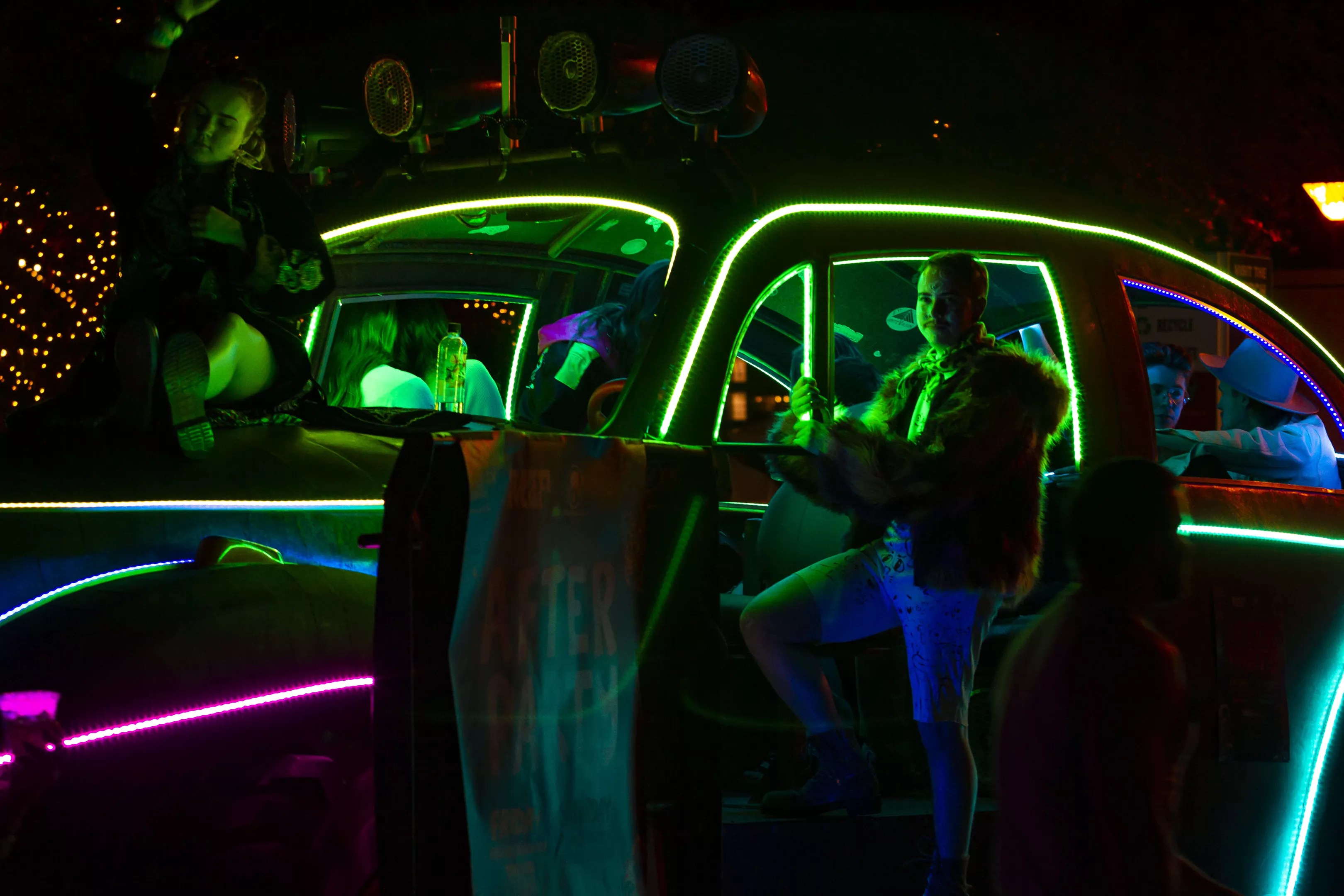 Are they being taken to “Funky Town” or just bouncing to Daft Punk? Only their headphones know for sure.