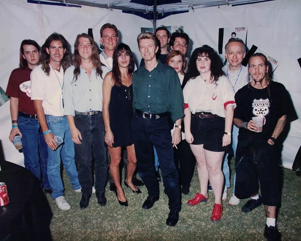 Members of The Edge’s staff with the late David Bowie during his 1995 tour stop with Nine Inch Nails in Phoenix.