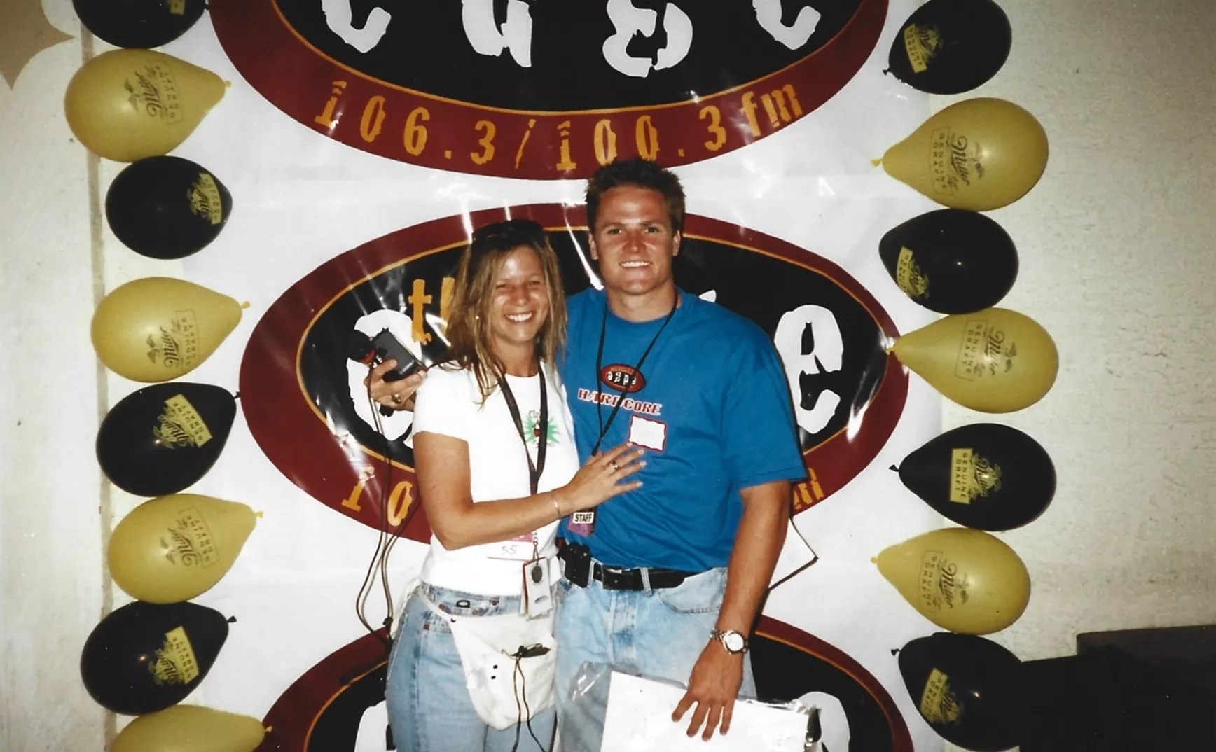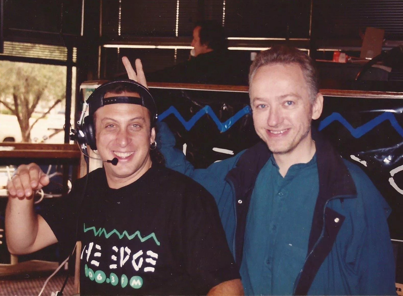 One of The Edge’s first morning jocks Willobee (left) in 1993 with the station’s then-program director, John “Edison” Clay.