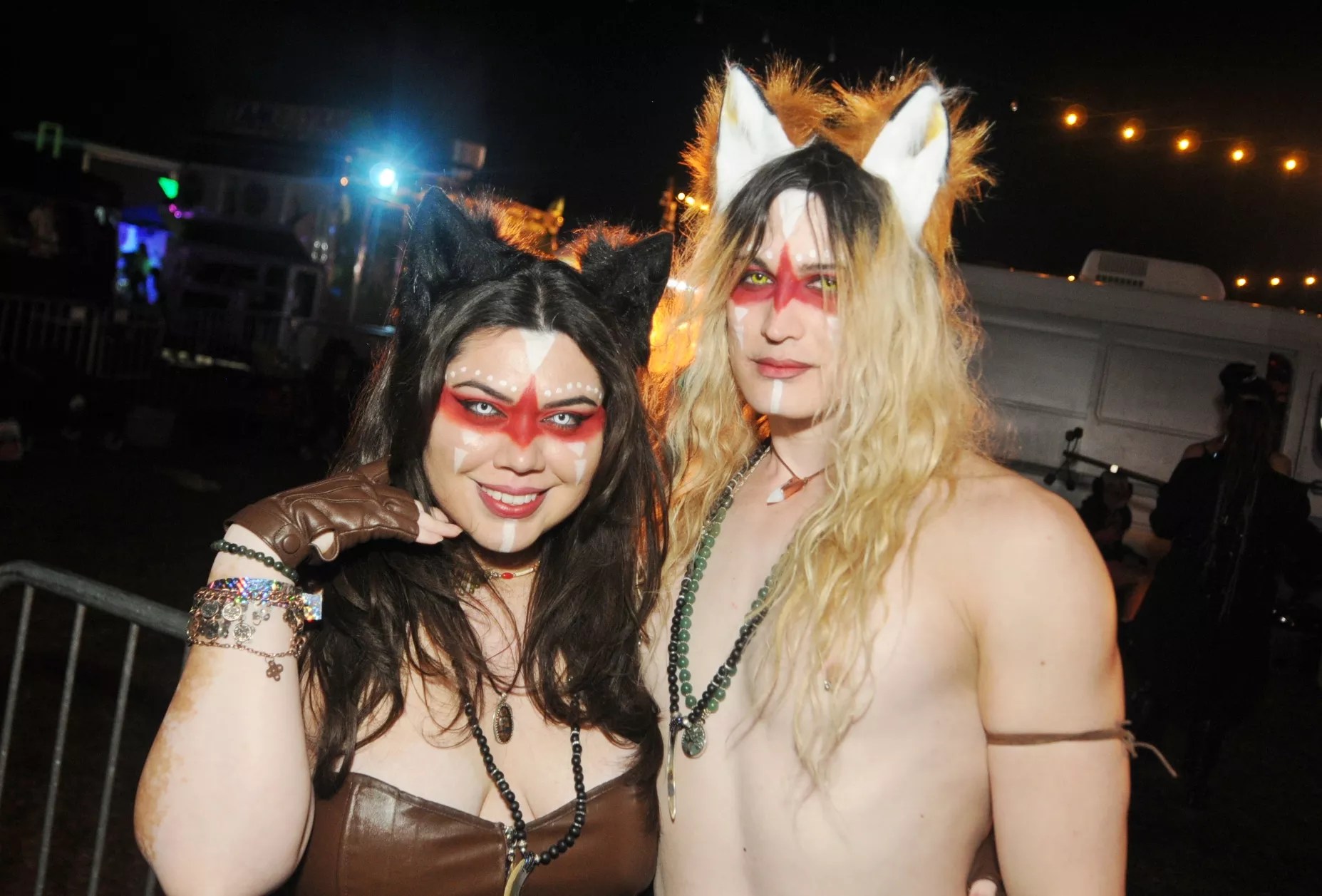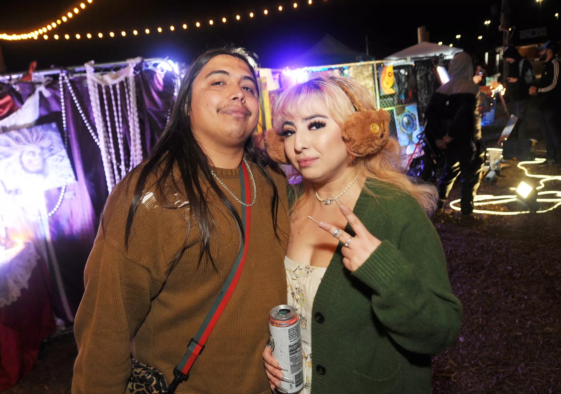 We spotted these two attendees near the outdoor art gallery at Full Moon Festival: Wolf Moon.