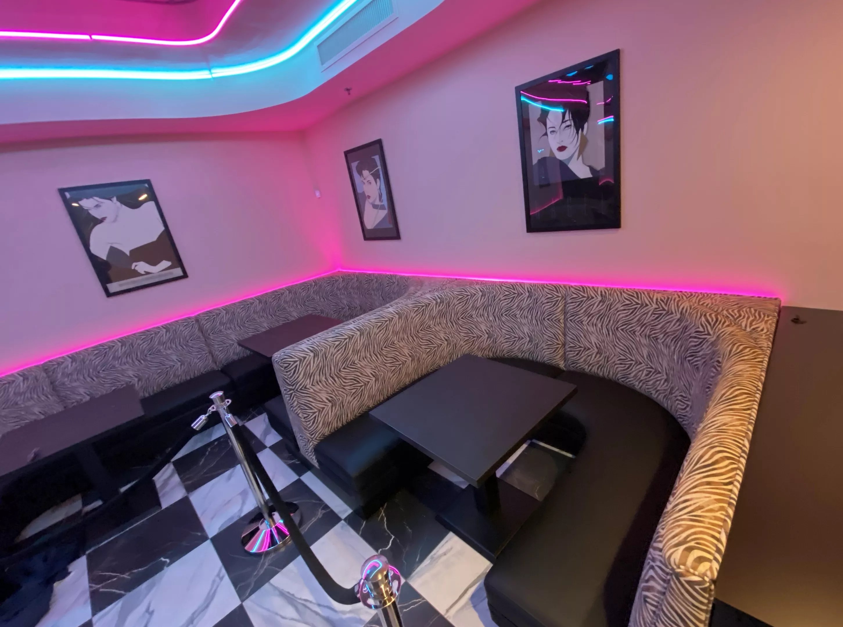 The old-school influences are everywhere at the “visually immersive” 3,000-square-foot club located at 747 W. Van Buren St. The entranceway resembles a light tunnel from “Star Wars.” The restrooms offer decor inspired by “Pee-wee’s Playhouse” and “Saved by the Bell.” And the neon-drenched main room features a ’80s mall food court vibe, mirrored ceilings and prints by legendary artist Patrick Nagel.