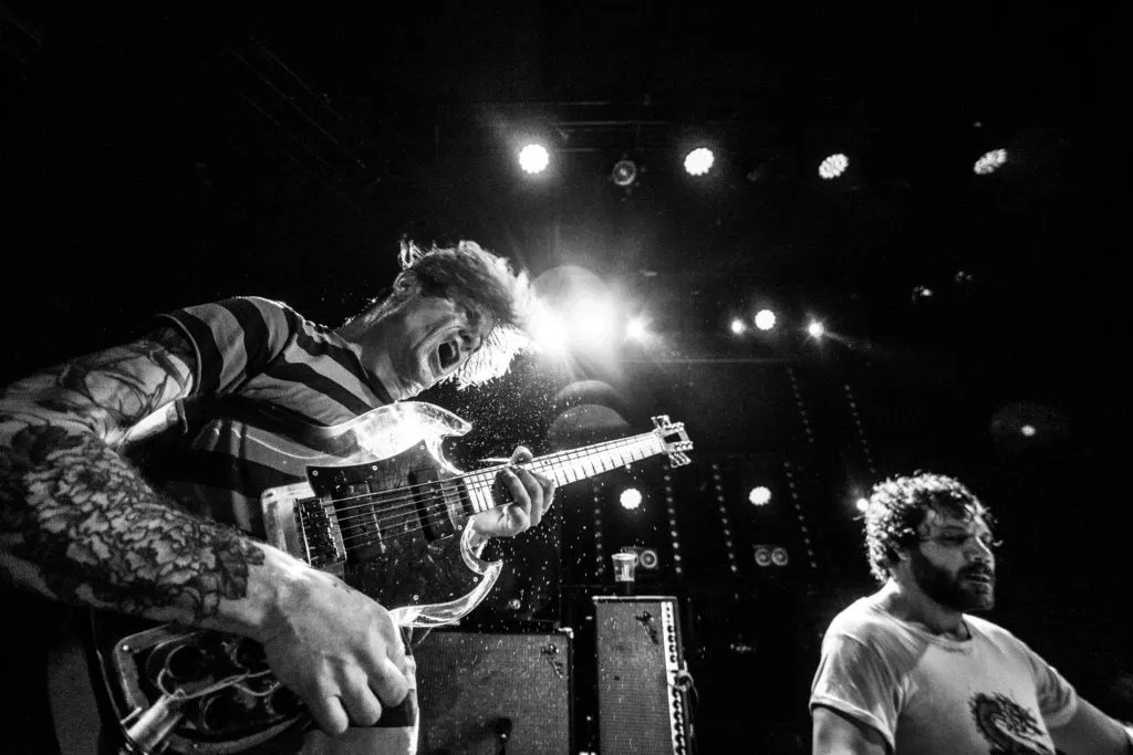 “It’s all about coming out of the gate hard and getting people whipped up. The drummers refer to it as ‘sport drumming,’ which I totally agree with. I’m all about that. I come from Providence (Rhode Island) and there were a lot of extremely active bands who were kind of nuts. We don’t really rely on a lot of lights or haze or any of that shit. Our show is all about what is happening on stage. It’s not like I’m running around, flipping out all day. We save it for the stage,” Dwyer says, before adding, “I’m all about the hot bath after the show, now.”