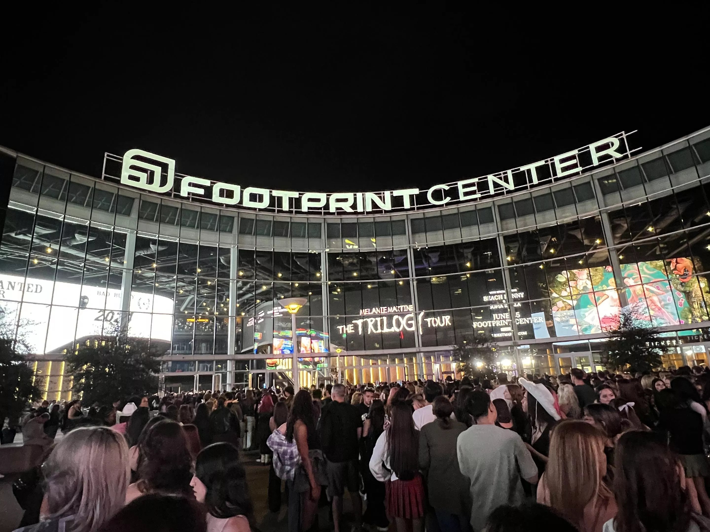 An animated crowd waits to get into Footprint Center.