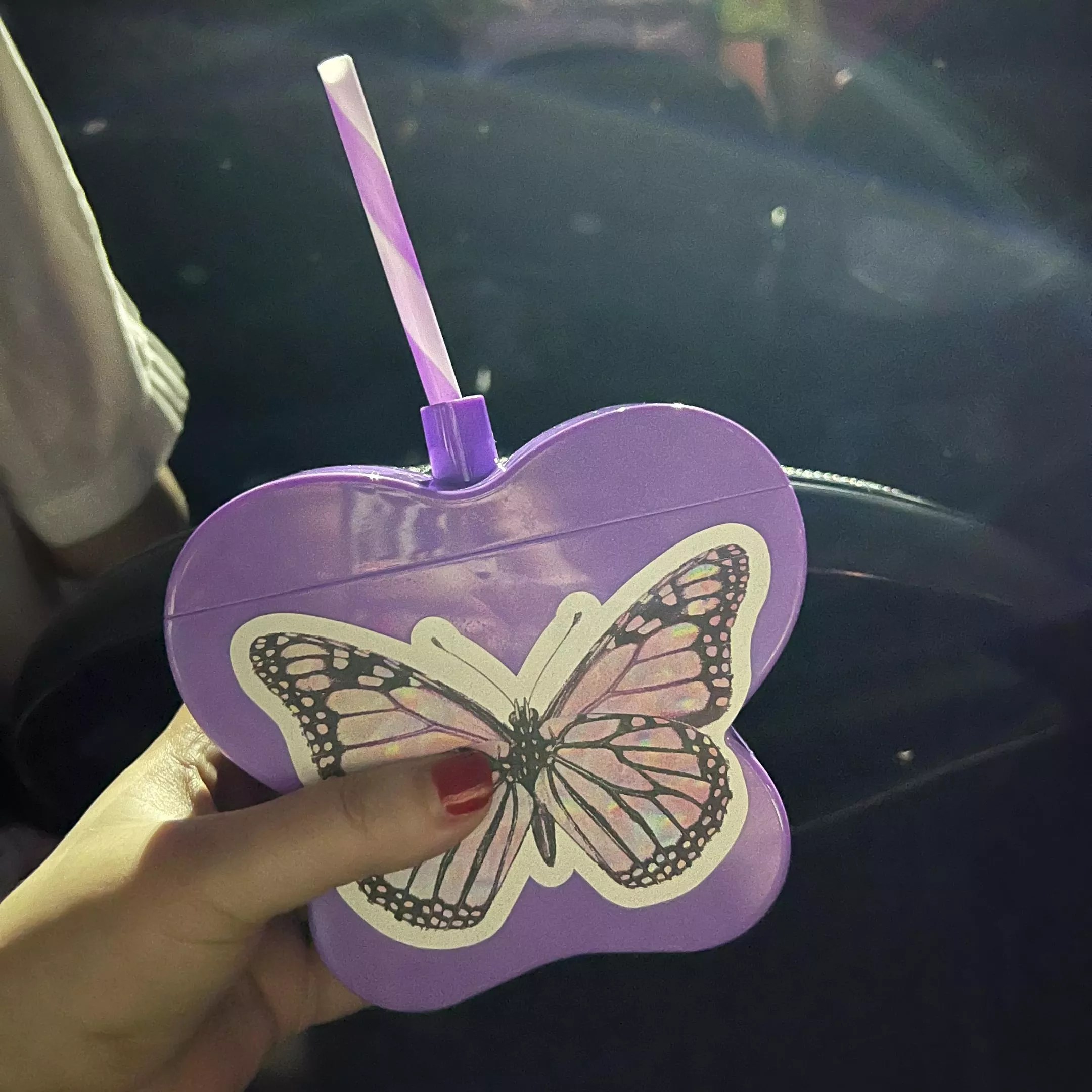 The signature cocktail of the evening was a berry lemonade and vodka creation served in a plastic purple butterfly cup.