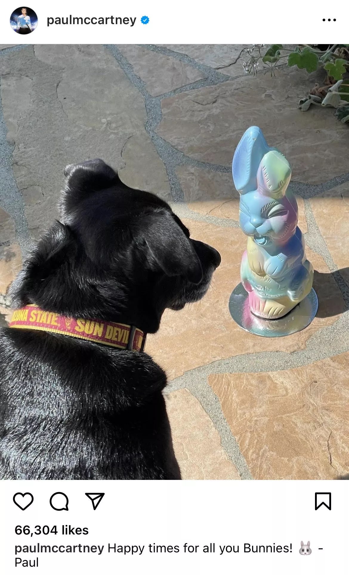 “Happy times for all you Bunnies! 🰠– Paul,” read the ex-Beatle’s March 31 post in a nod to the Easter holiday.