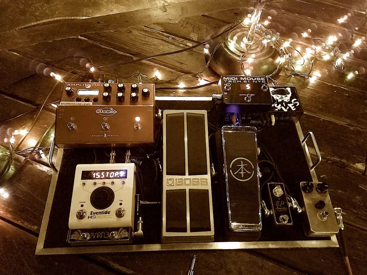 My dad is a guitar player, as well as a meticulous craftsman, and he helps me a lot with my rig. It’s special to me that the pedalboard I use is a Jim Sterling creation. All cables are cut to exact lengths, pedal power supplies routed cleanly, absolutely no issues at all.