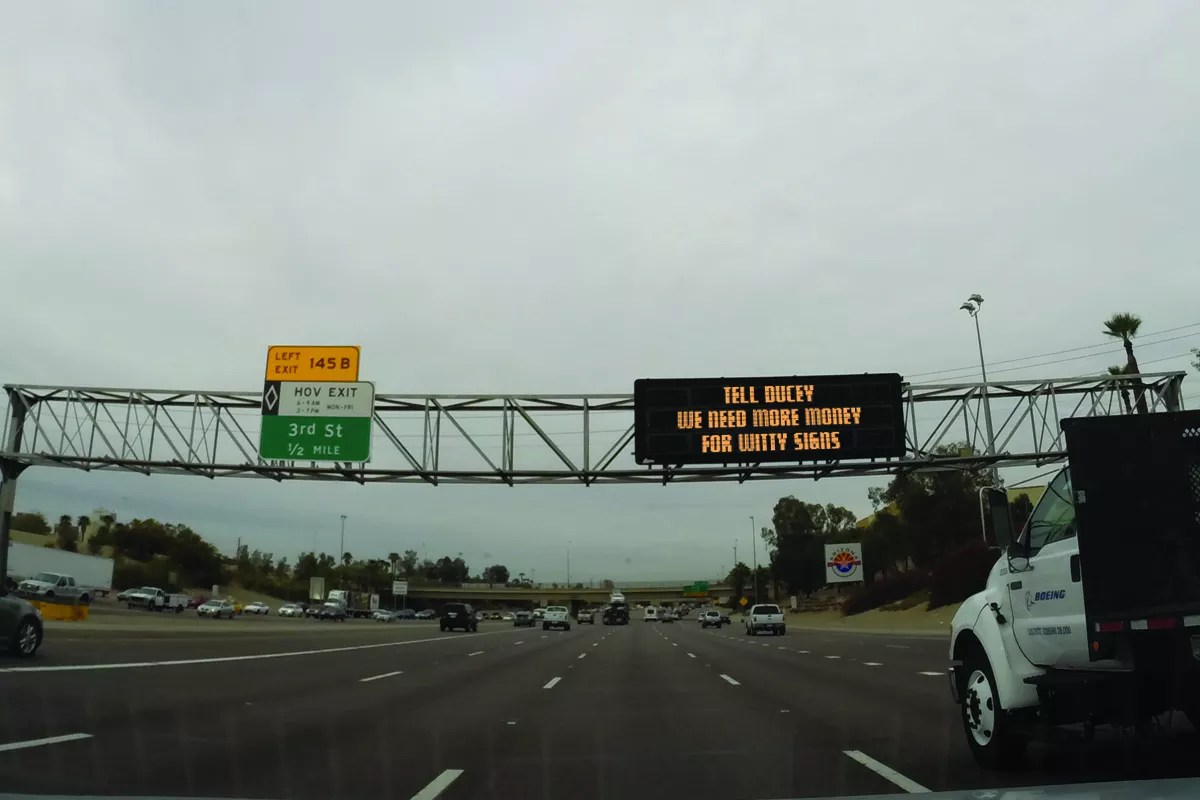 A handful of people people took the contest as an opportunity to gripe about ADOT’s signs, writing lengthy harangues about how humorous messages only serve to distract drivers, and will inevitably cause a car accident that costs the state a lot of money.