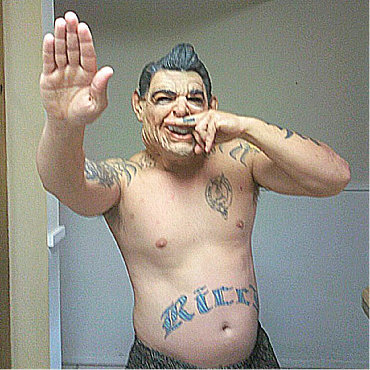 Ricci’s attorney Jennifer Willmott says Ricci is “not a neo-Nazi,” but his tattoos – the Hitler ‘stache on his middle finger and the SS bolts near his neck, among others – argue otherwise.