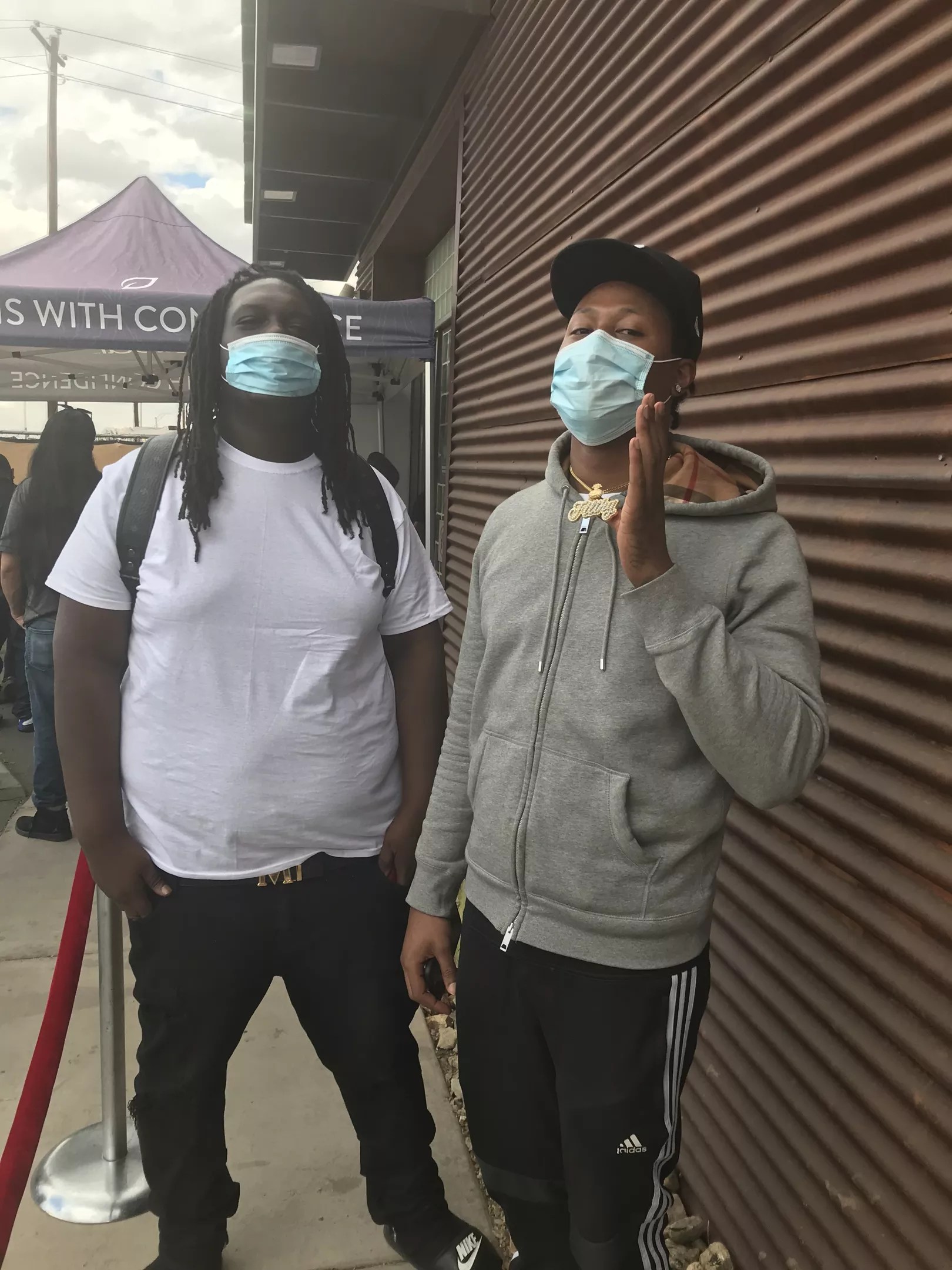 Friends A.J. Johnson and Bobby Jones were figuring out how to place their orders in line before heading in. Johnson told Phoenix New Times that he was trying to buy the best flower they had.