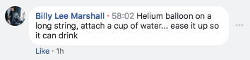 One person suggested attaching a water cup to a helium balloon to give the parched cat something to drink.