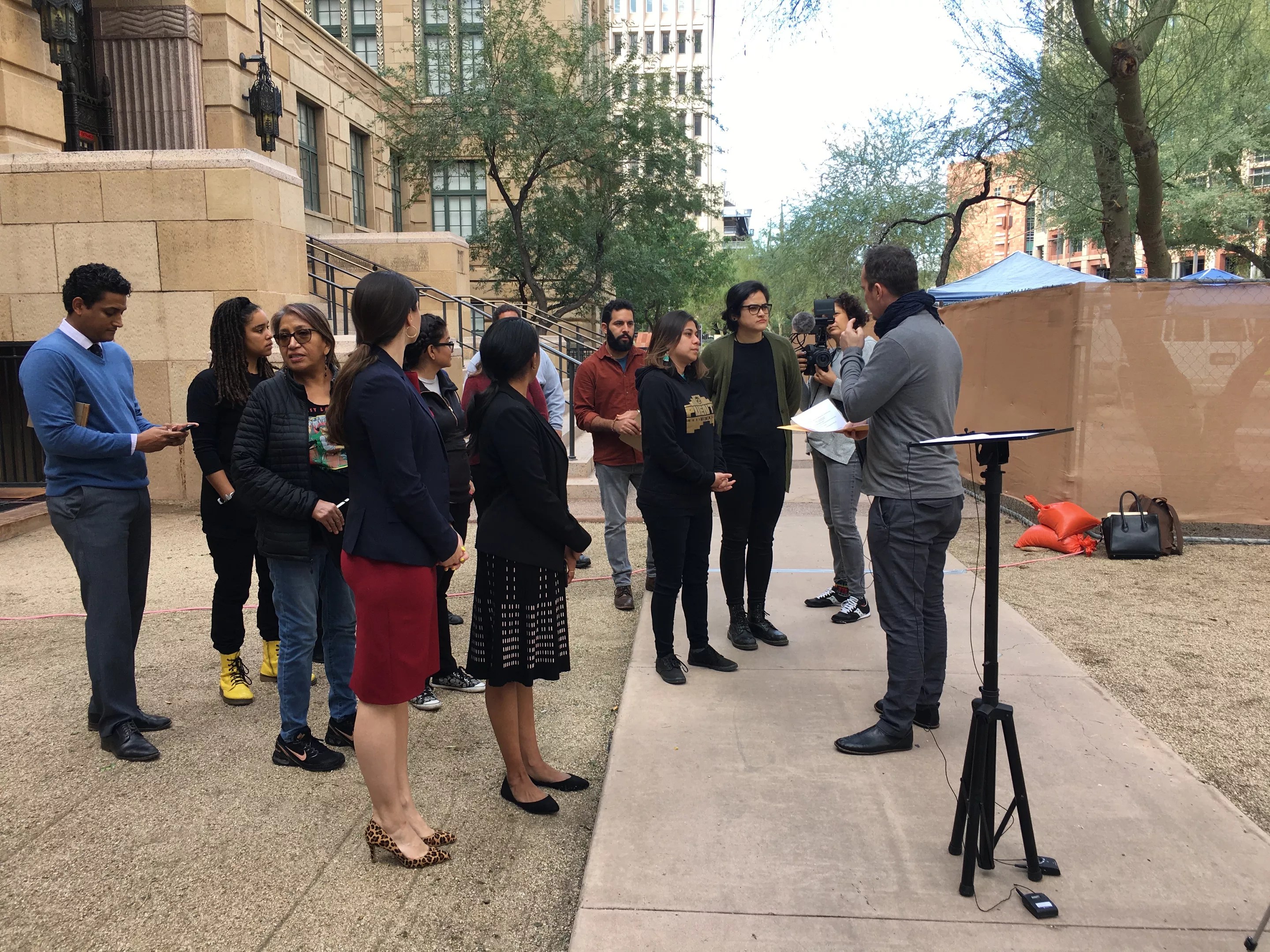 Civil rights groups suing the Arizona Legislature gather the morning of December 4, 2019, ahead of a press conference announcing their lawsuit.