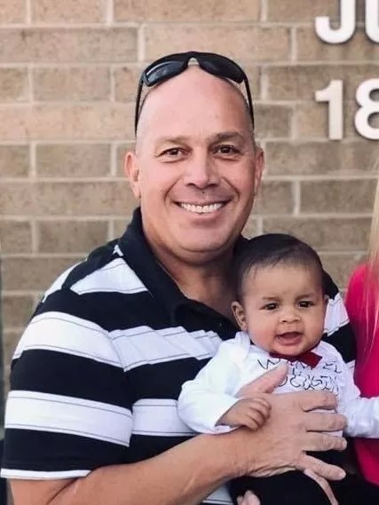 Lloyd Shull poses with his grandson.