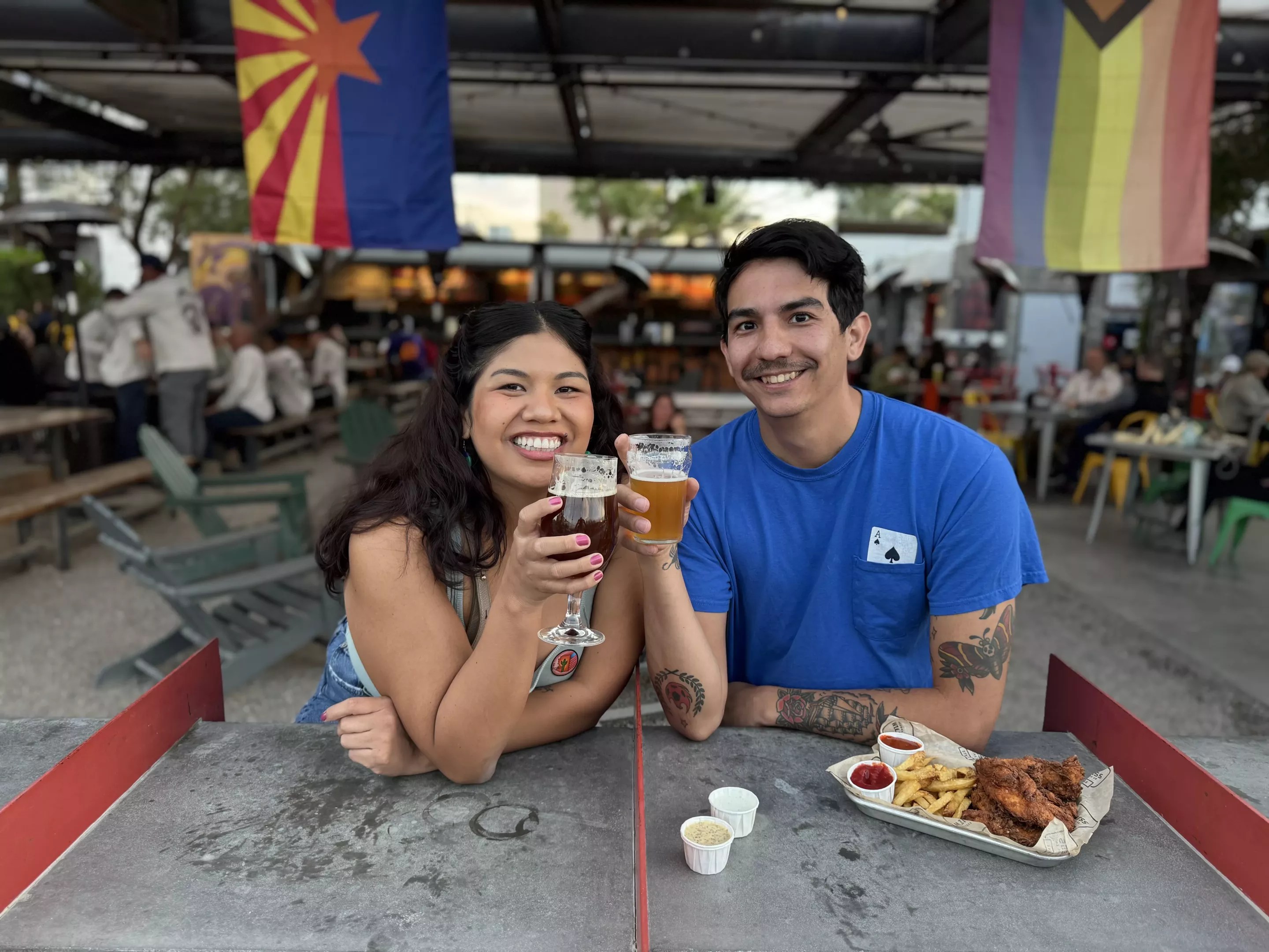 Emily Ewan and Alex Kohlhaas, visiting from Minneapolis, checked their phones over drinks at Pattie’s in Old Town Scottsdale.