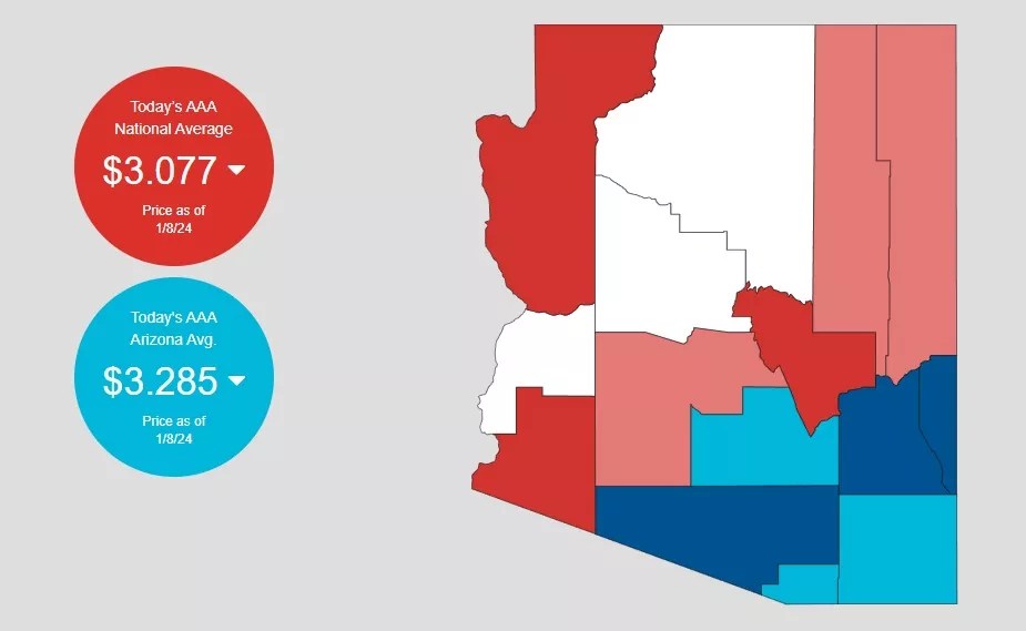 Nationally, the average price for a gallon of unleaded gas on Monday was $3.077, according to AAA. Arizonans are shelling out an average of $3.285 for a gallon of go-juice.