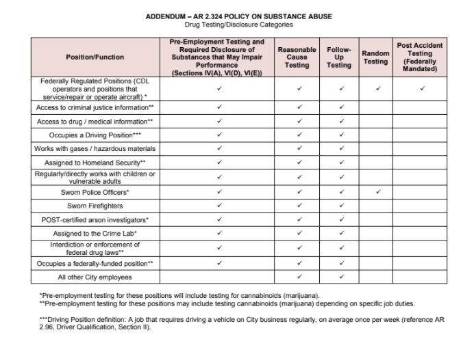The City of Phoenix only tests for cannabis in some employee categories.