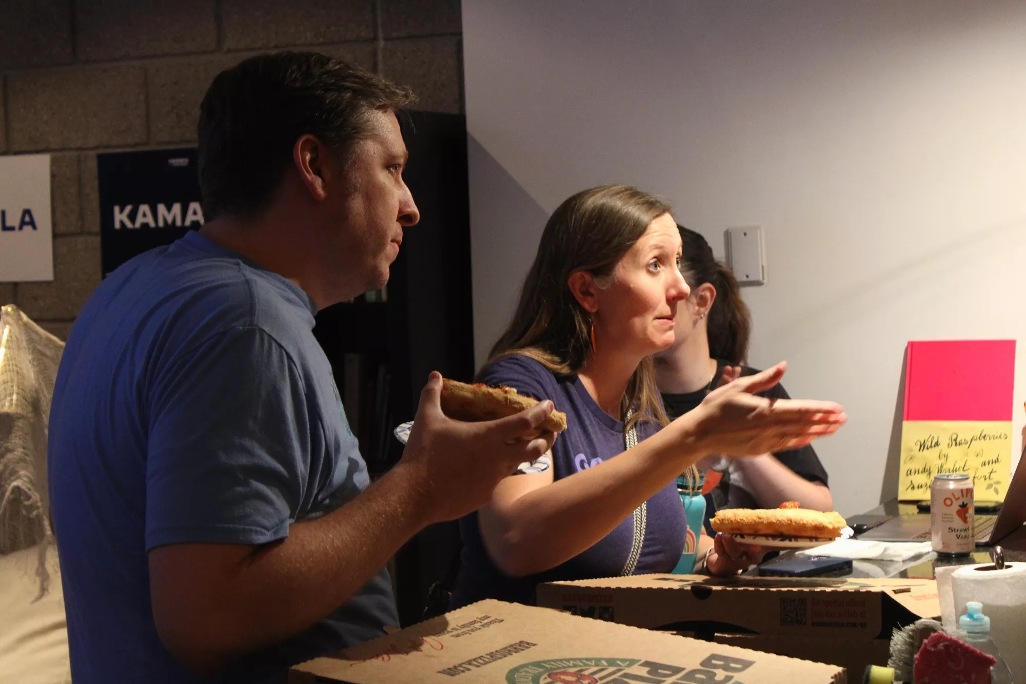 For Tuesday’s debate, church advisory committee members gathered in a cozy two-story midtown Phoenix townhome decked out for Halloween. There were witch hats, spiderwebs and bat decorations – and, of course, Harris-Walz campaign signs. Attendees ate Barro’s pepperoni pizza and snacked on sliced cheeses as Vance and Walz squared off.