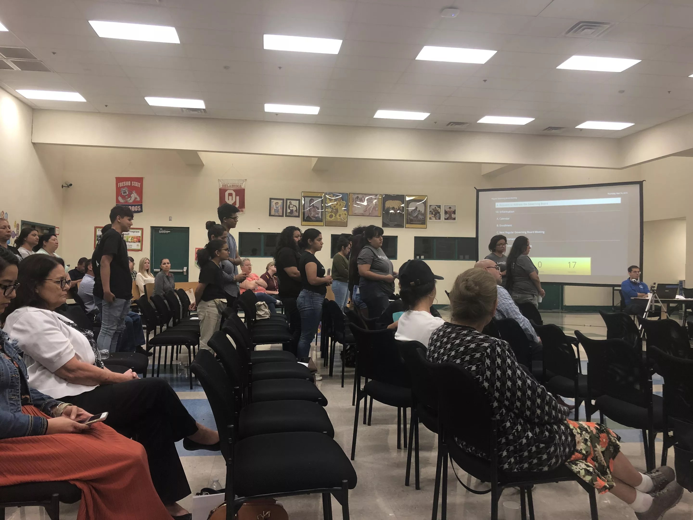 After the two community members’ time to speak ended, the board members moved to dismiss the public portion of the meeting. But another Puente member stood up.