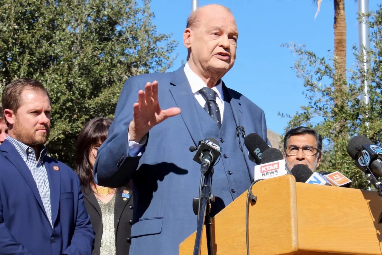 Arizona Superintendent of Public Instruction Tom Horne (center) is on the outs with Republican state Sen. Jake Hoffman (left), who has recruited a primary challenger for Horne in the GOP primary.