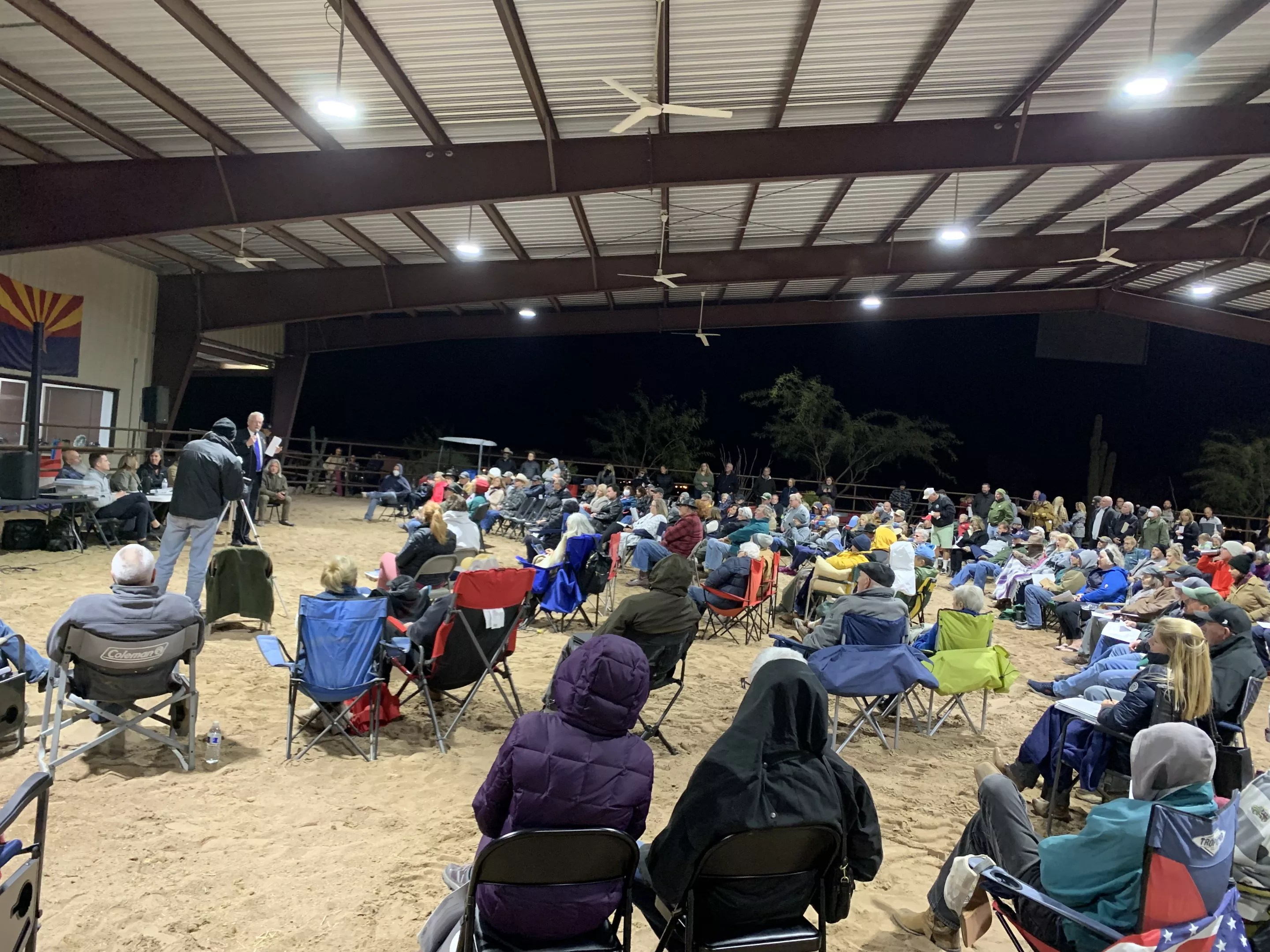 On a recent weeknight, a discussion of the water crisis brought hundreds of people. They hiked along dimly lit dirt paths in the moonlight to Reigning Grace Ranch to gather in a horse-riding arena. Residents brought lawn chairs and wrapped themselves in blankets to stave off the chilly winter night air.