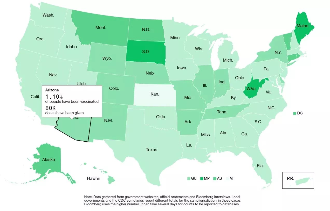 Bloomberg’s vaccination tracker shows Arizona’s rate has improved this week.