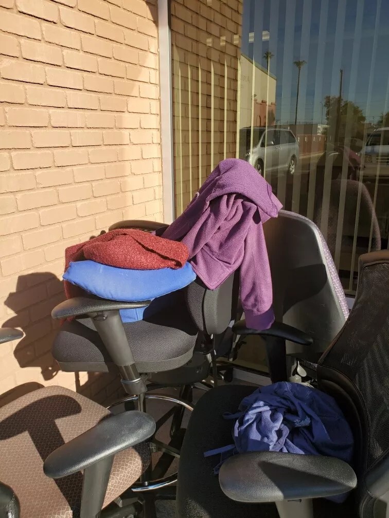 At around 7 a.m. on Monday, the Department of Economic Security employee pulled into work, opened her car door, and met an all-too-familiar sight. There were about a half-dozen office chairs, clustered together in the parking lot outside the building.