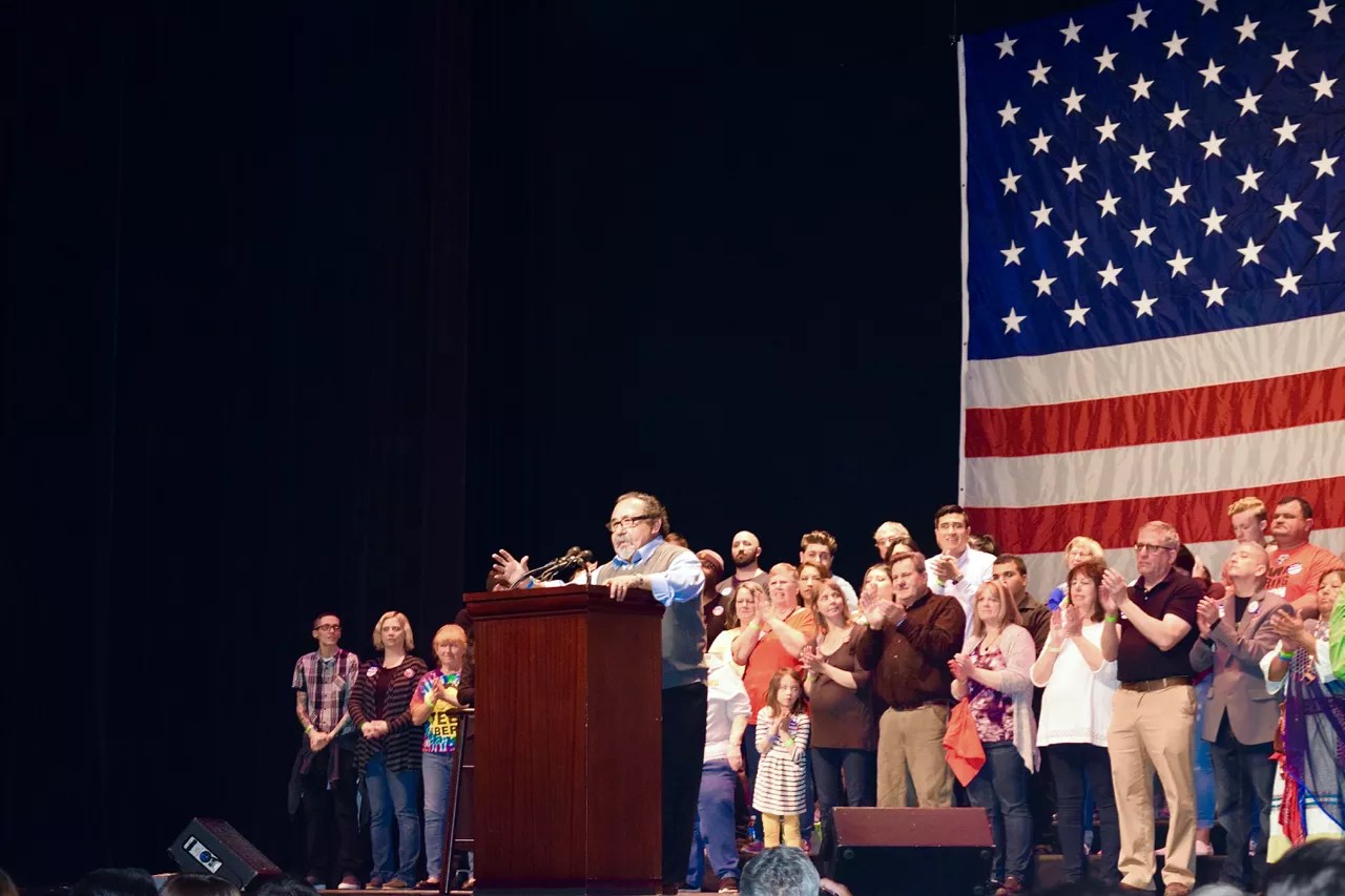 Sanders was joined on stage by Arizona Democratic congressmen Ruben Gallego and Raul Grijalva, who gave speeches to warm up the crowd. Nina Turner, a former state senator from Ohio, also addressed the room as the president of Our Revolution, a Sanders-aligned political action group.