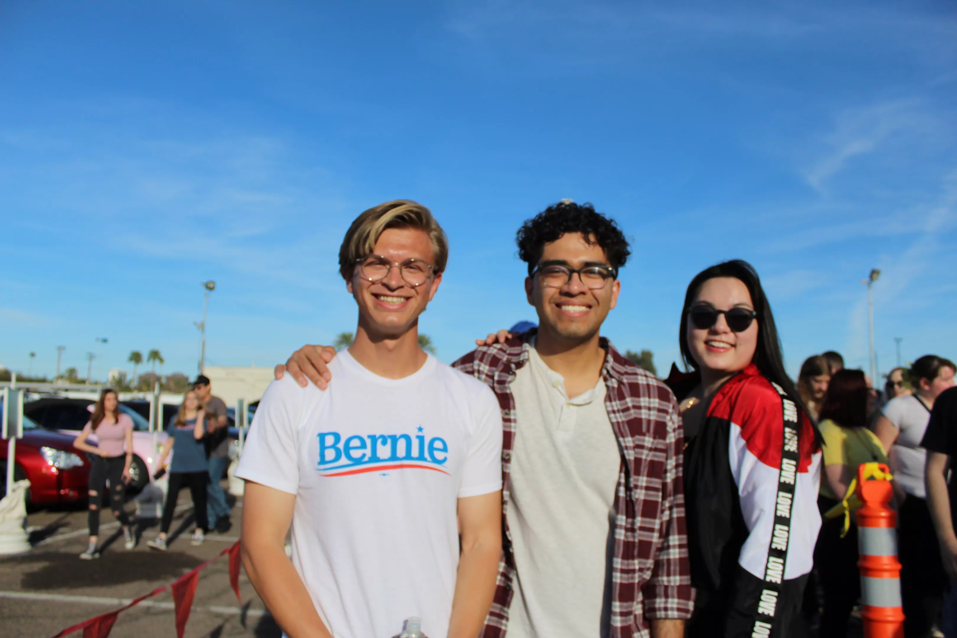 A diverse, youthful crowd of Sanders supporters gathered to hear the independent senator speak at the Arizona Veterans Memorial Coliseum on Thursday, filling about two-thirds of the 14,000 capacity venue. The turnout was nevertheless a stark contrast to the packed stadium when Republican incumbent President Trump took the same stage three weeks before.